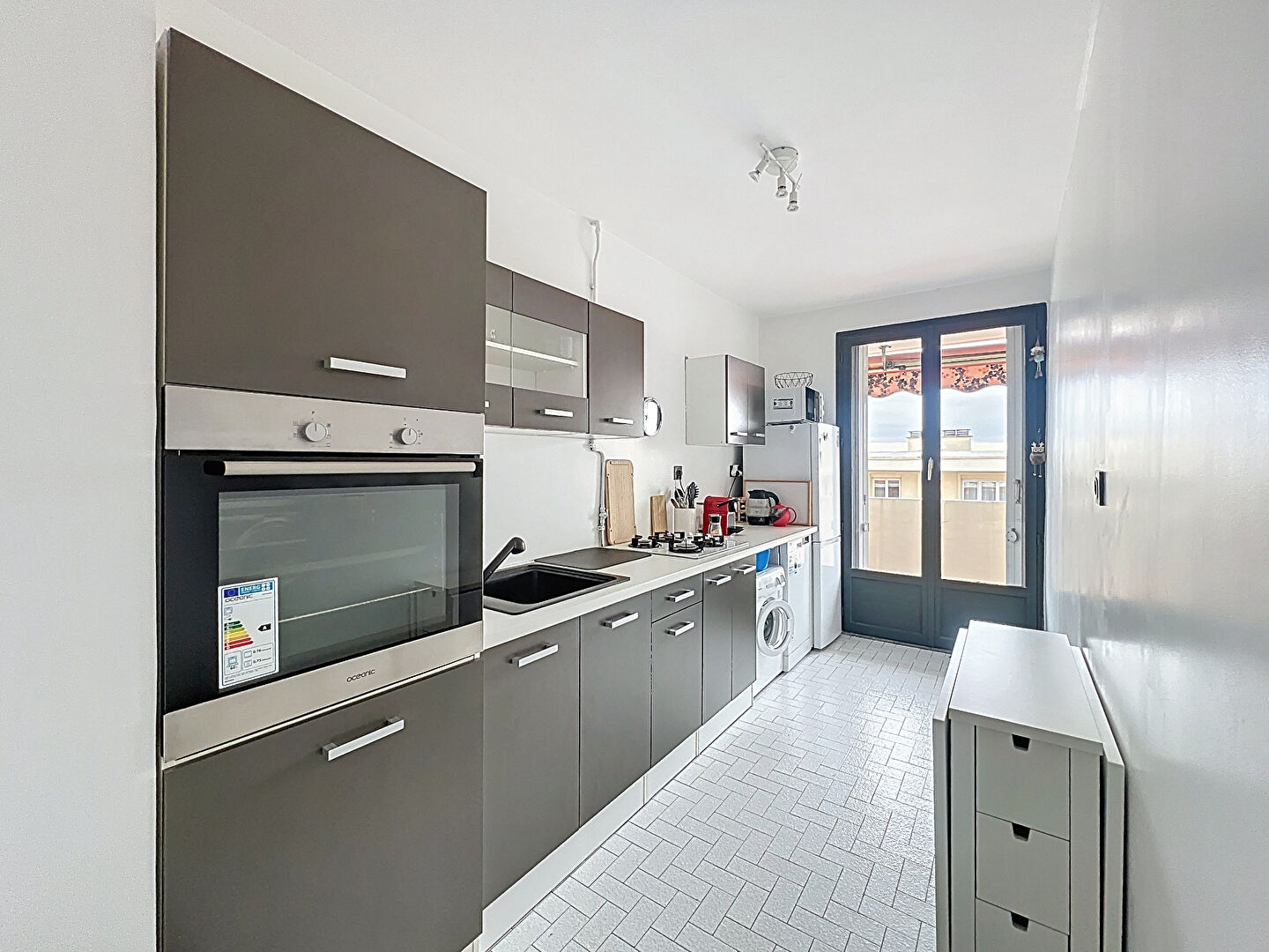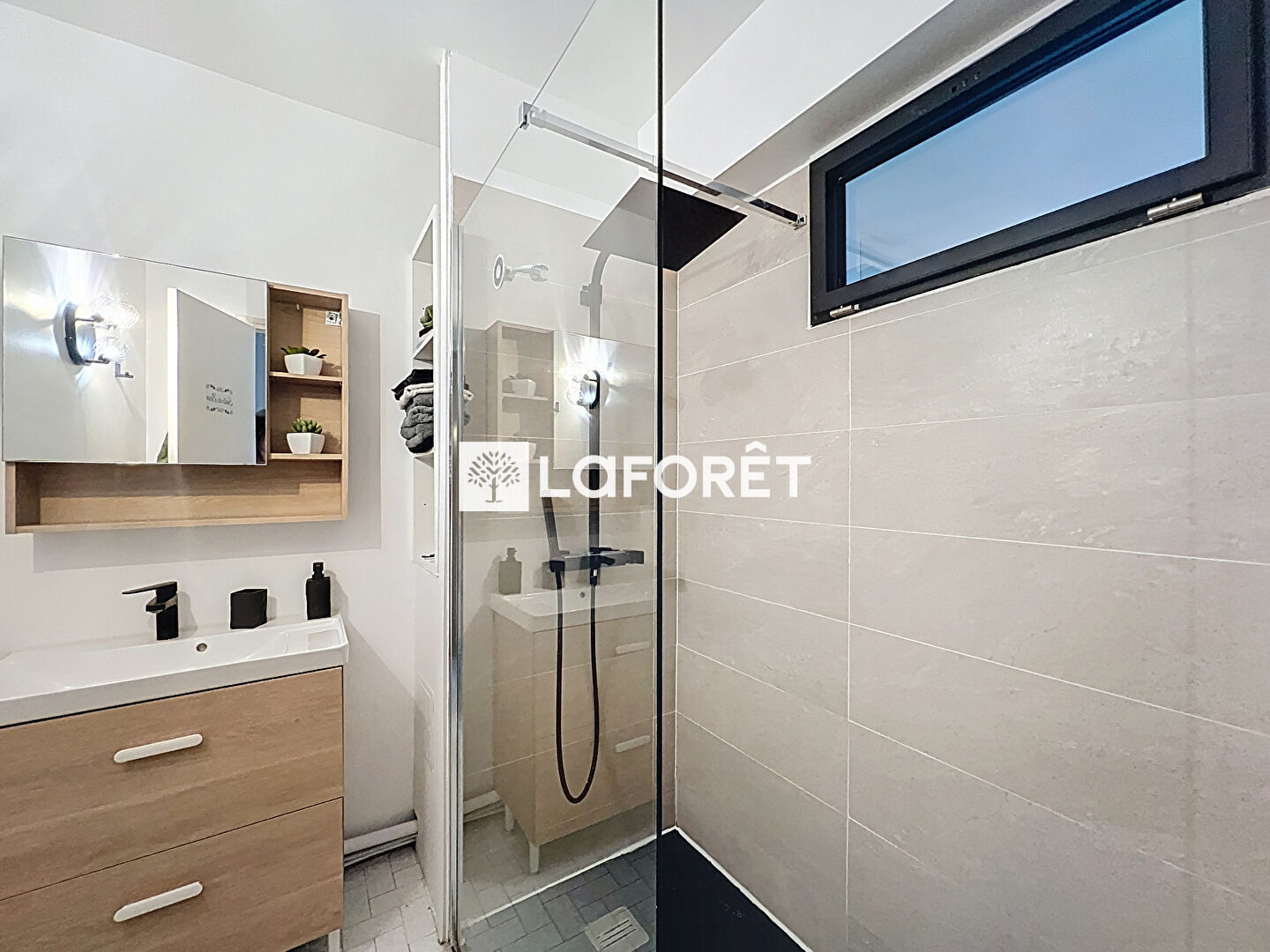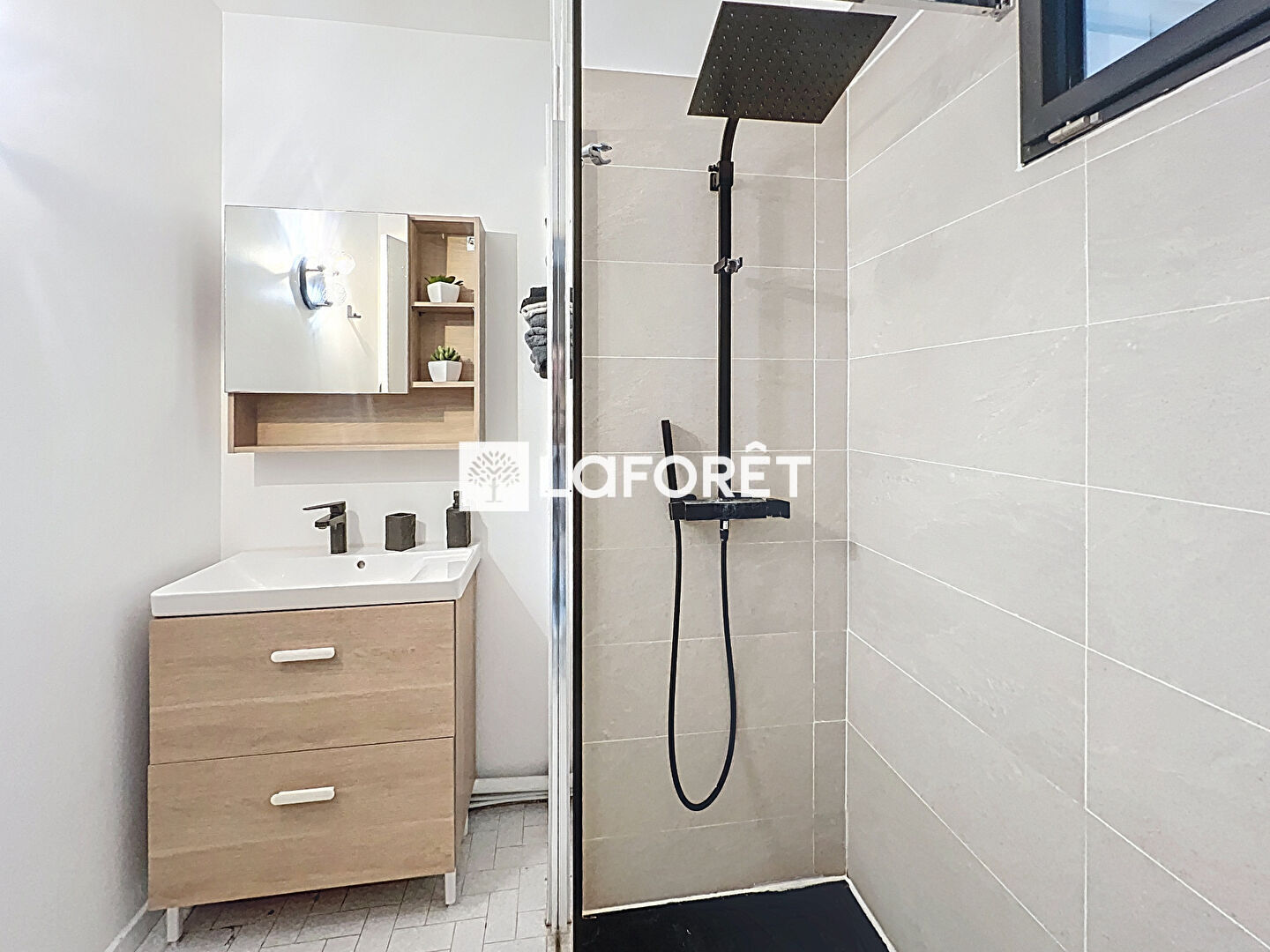 Il se compose d'une entrée avec rangements, une cuisine indépendante, un séjour lumineux ouvrant sur la terrasse (expo.sud), d'une chambre sans vis-à-vis avec une agréable vue verdoyante, une salle de douche à l'italienne et de WC séparés.
