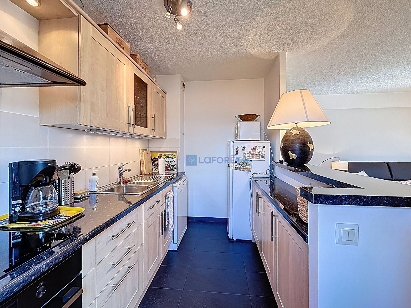 L'appartement entièrement climatisé se compose; d'une entrée, d'un agréable séjour avec cuisine ouverte, d'une chambre confortable avec placard, d'une salle de bains ainsi que d'un WC indépendant.