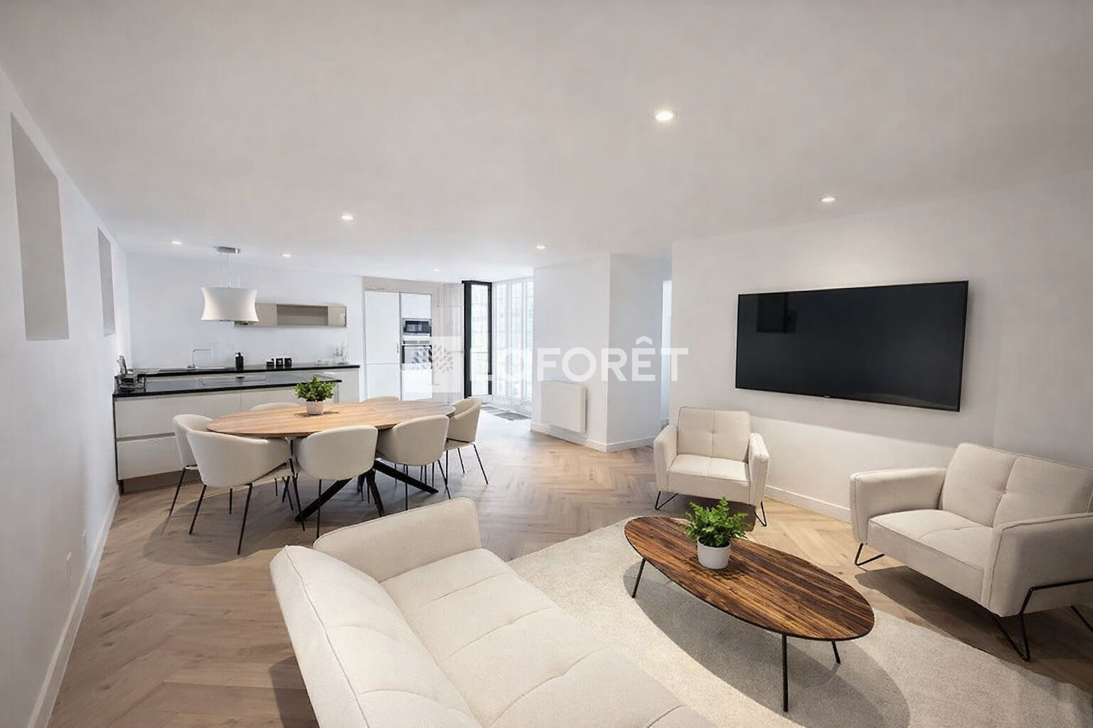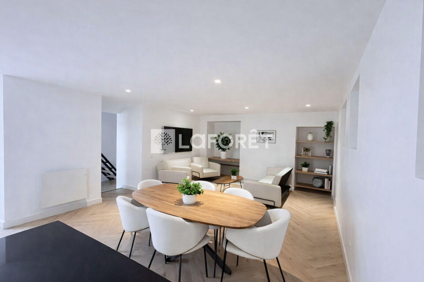 Le bien de 95.55 m² a été entièrement rénové avec soin, avec des matériaux de qualité.