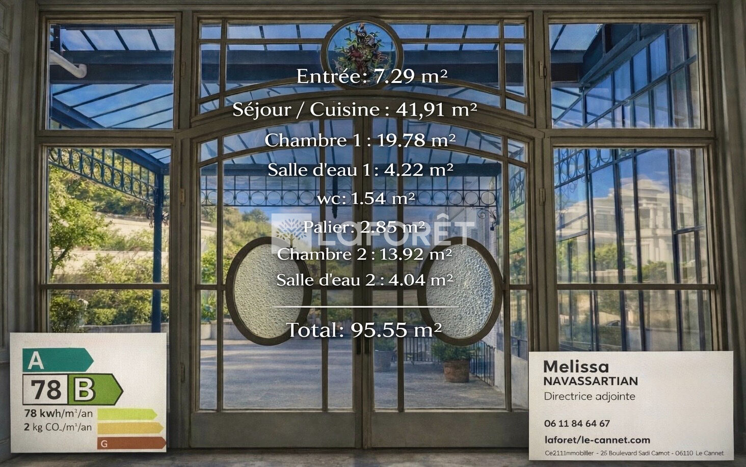 Pour toute information ou/et organiser une visite, contactez Mélissa Navassartian LAFORET Le Cannet : 06.11.84.64.67