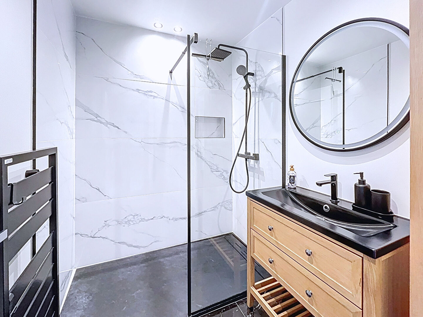 Côté nuit, vous trouverez une belle chambre avec dressing, une salle d'eau moderne