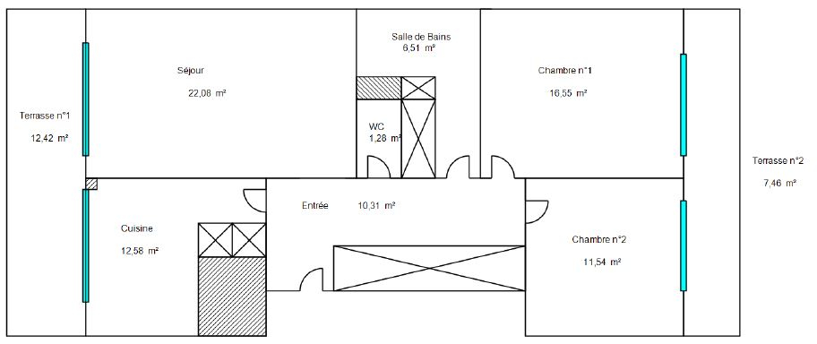 L'appartement se compose d'une entrée, d'une cuisine indépendante , d'un séjour lumineux, de deux chambres, d'un W.C indépendant, d'une salle de bains.