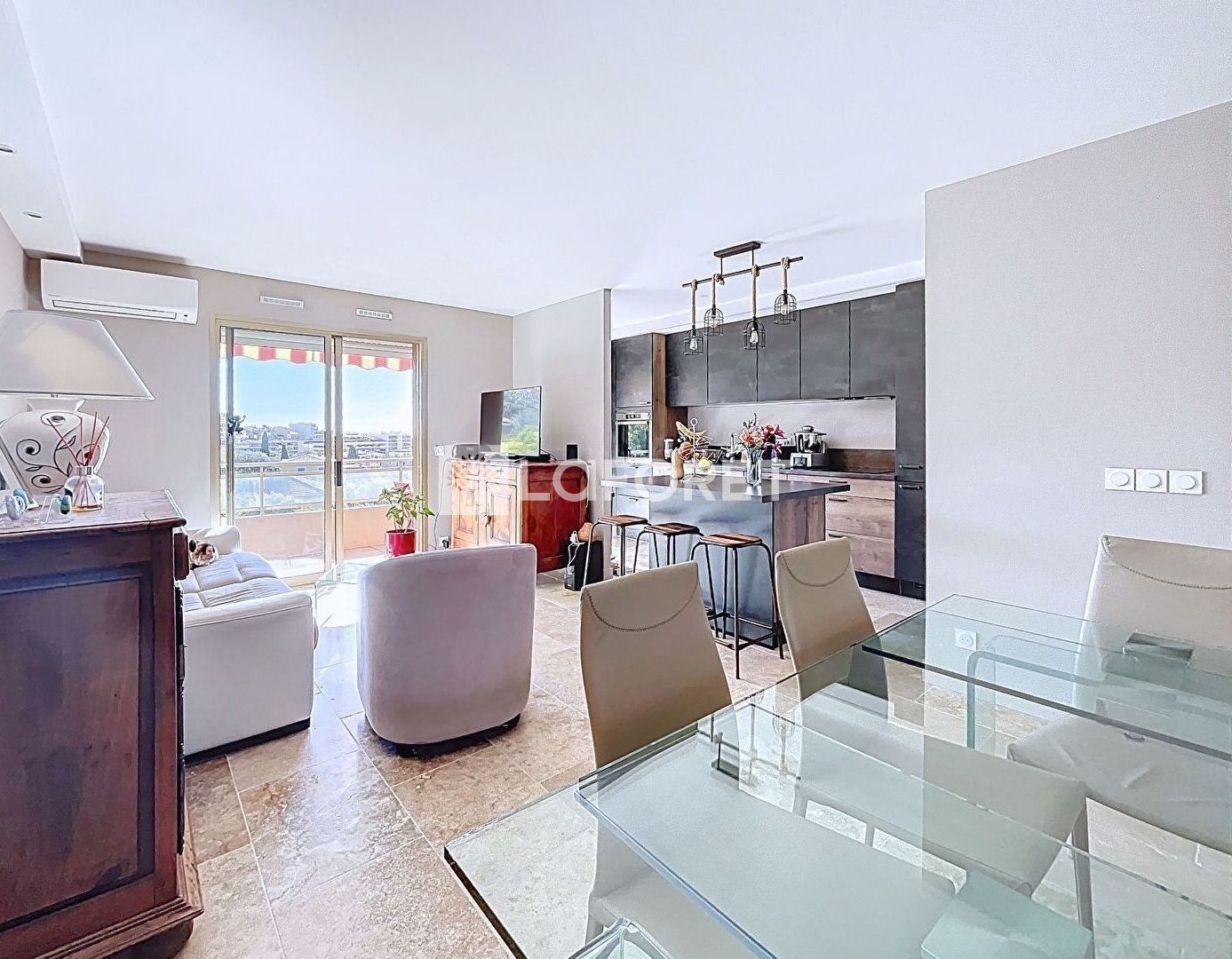 Niché au dernier étage avec ascenseur, cet appartement baigné de lumière, offre un cadre de vie paisible et une magnifique vue mer depuis sa terrasse de 10 m².