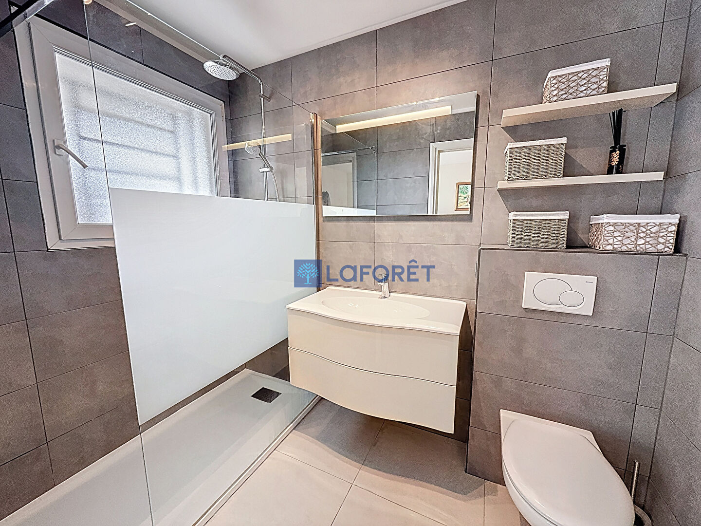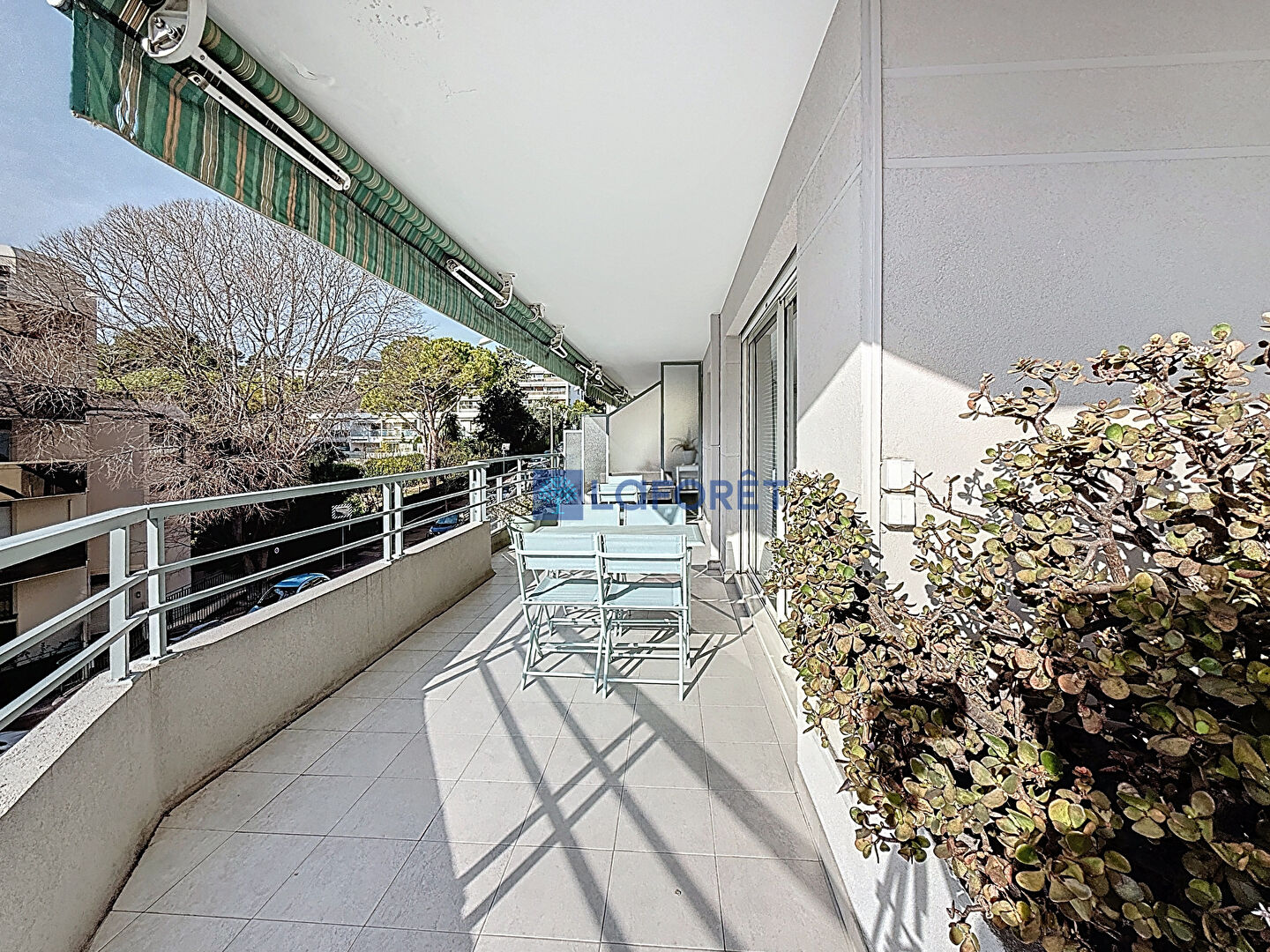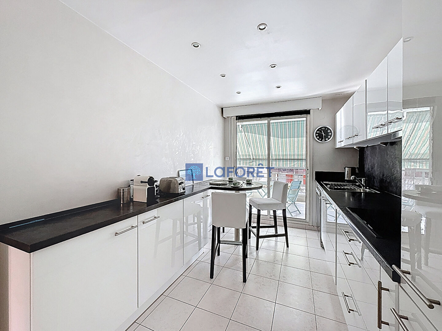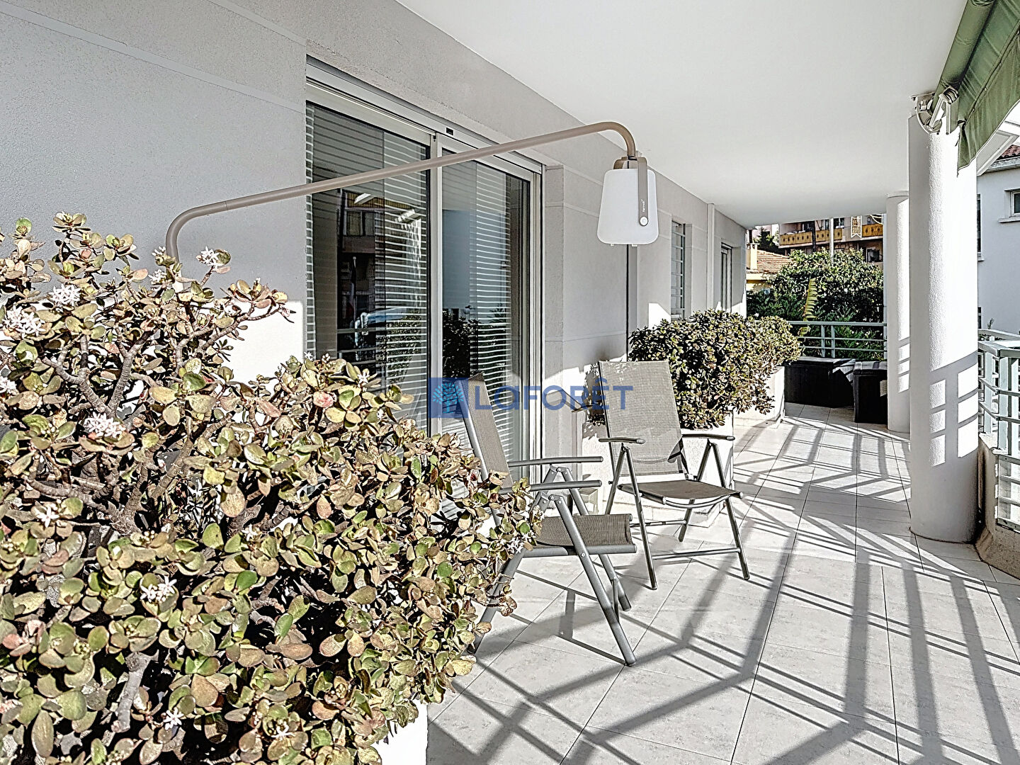 Une spacieuse terrasse d'environ 48 m2, bordant l'ensemble de l'appartement, est accessible depuis la cuisine, le séjour et l'une des chambres, offrant un véritable prolongement des espaces de vie.