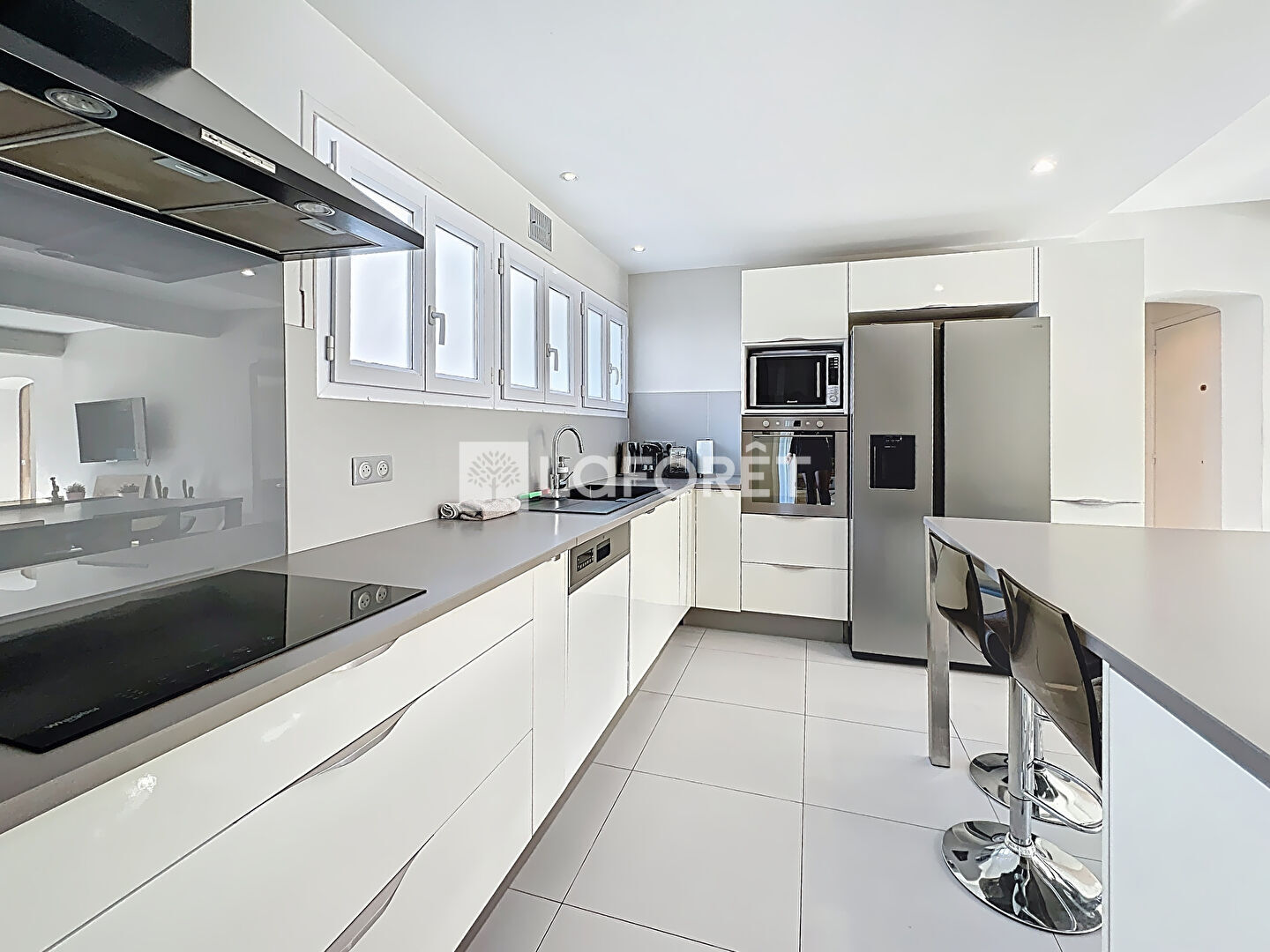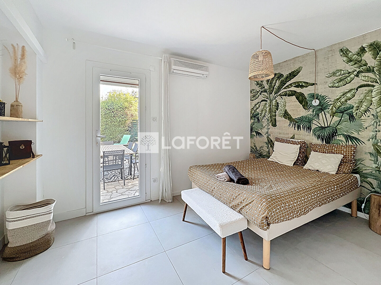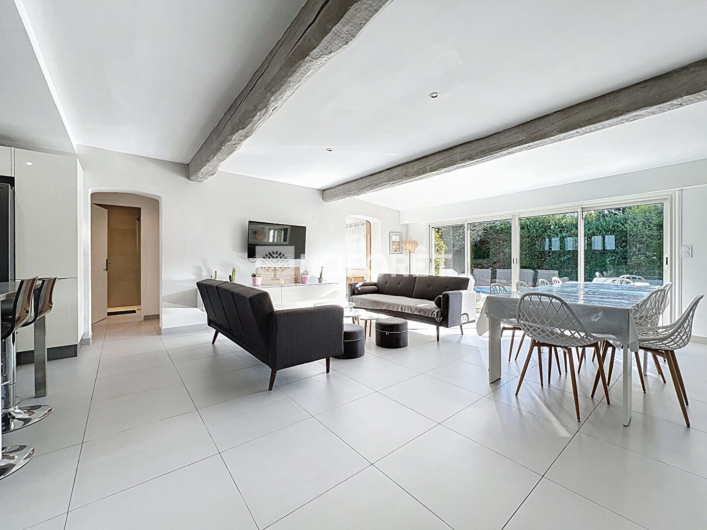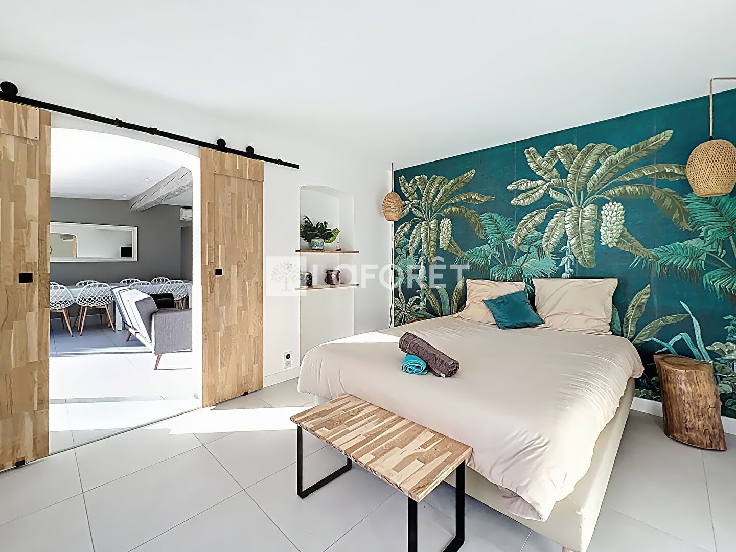 Au rez-de-chaussée, un vaste séjour de 50 m² avec cuisine américaine aménagée et équipée, s'ouvrant tous deux sur l'extérieur avec terrasse, jardin et une charmante piscine. 3 grandes chambres avec rangements, une élégante salle d'eau à l'italienne avec double vasque, de nombreux rangements, un WC séparé ainsi qu'un garage fermé complètent ce niveau.
