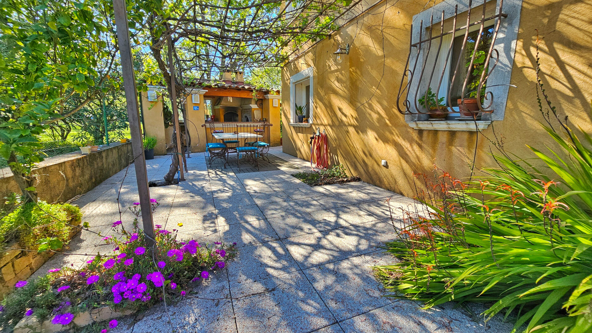 En effet à l'extérieur, tout est pensé pour profiter pleinement du climat provençal : terrasse conviviale, cuisine d'été avec four à pizza, et un charmant espace ombragé sous tonnelle en fer forgé habillée de plantes grimpantes.