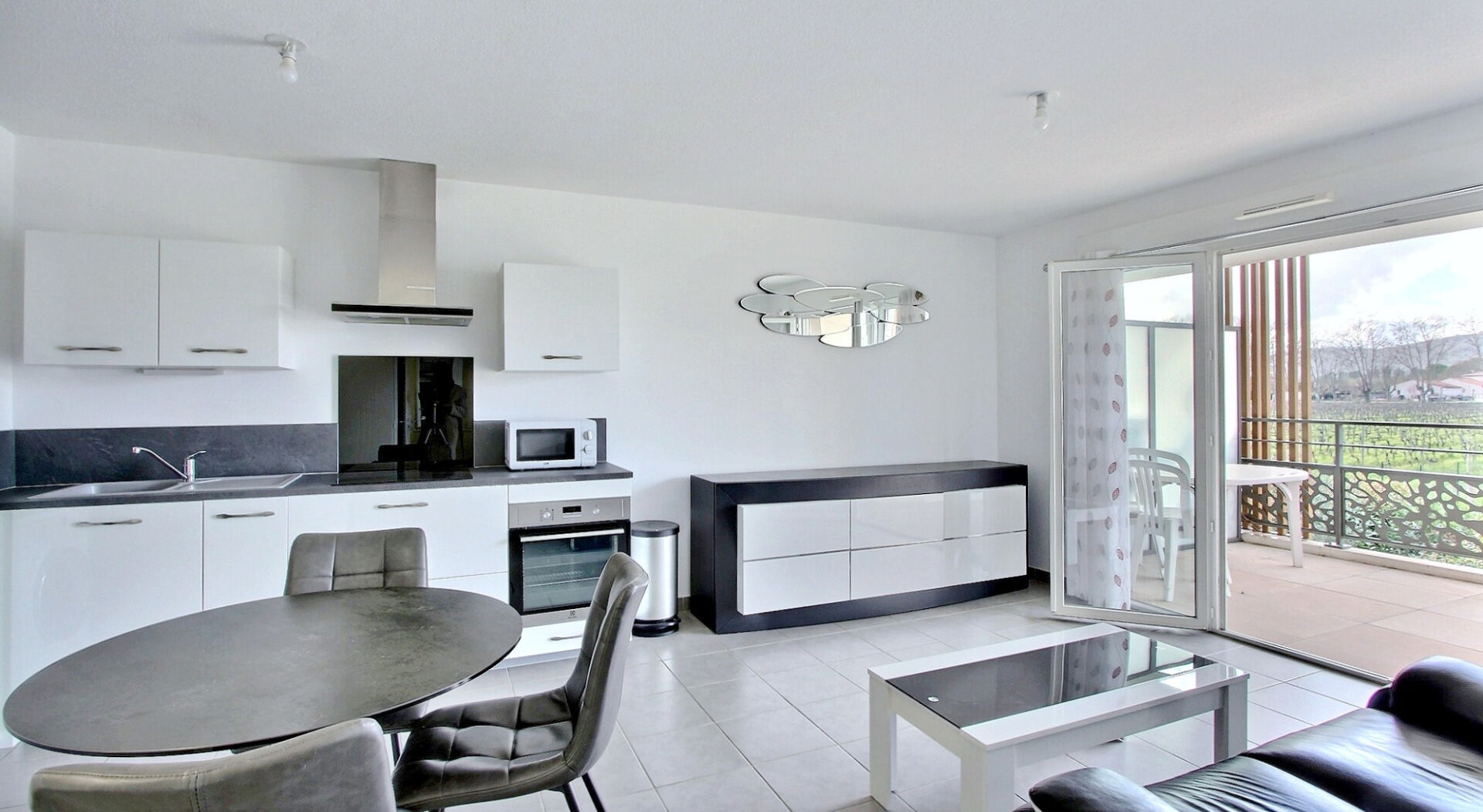 Dès l'entrée, vous serez séduit par un espace de vie généreux et baigné de lumière, ouvert sur une cuisine moderne entièrement équipée, idéale pour recevoir comme pour le quotidien.