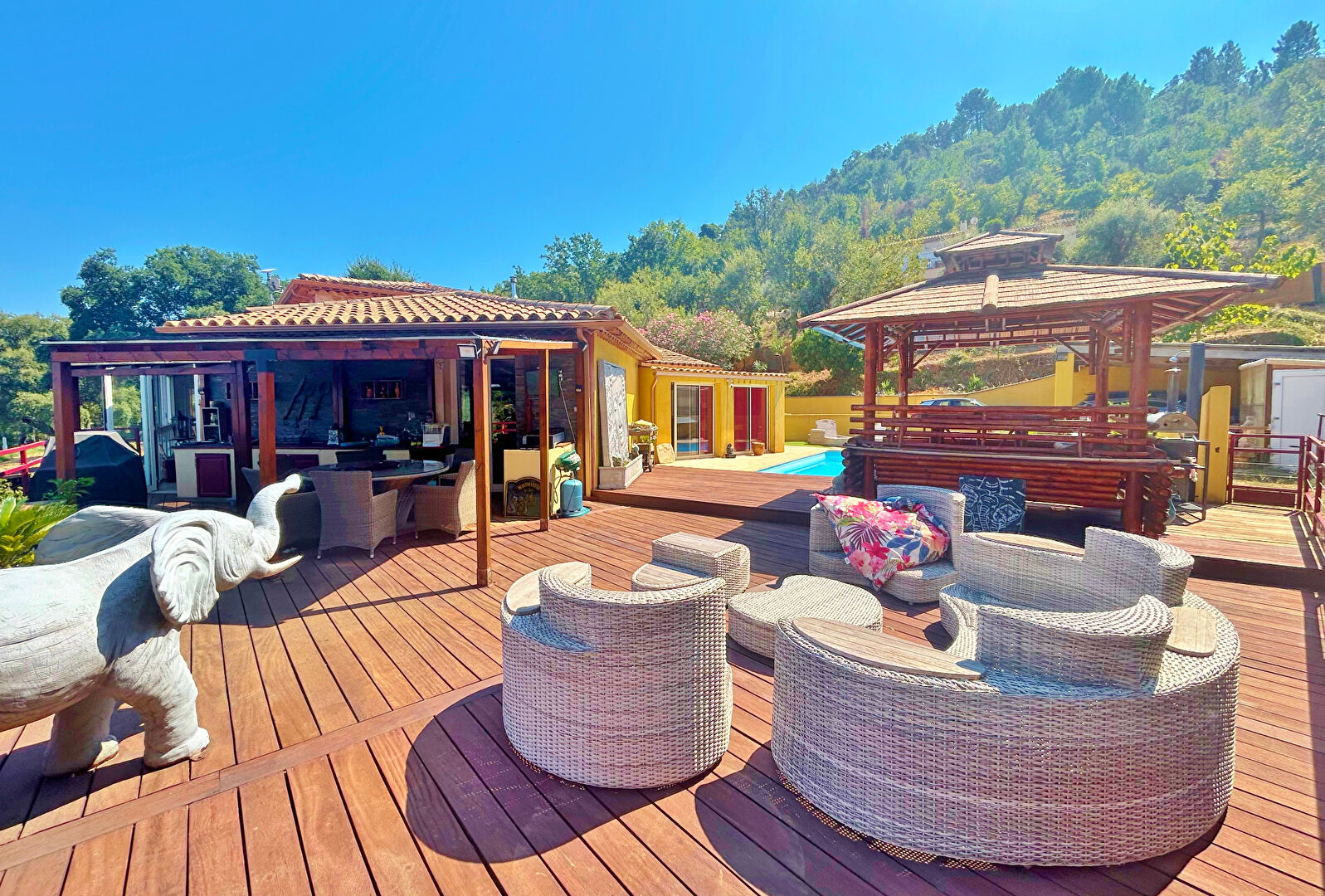 À l'extérieur, tout est pensé pour le plaisir : cuisine d'été, piscine, espace jacuzzi fermé, sans oublier le jardin où règnent calme et sérénité.