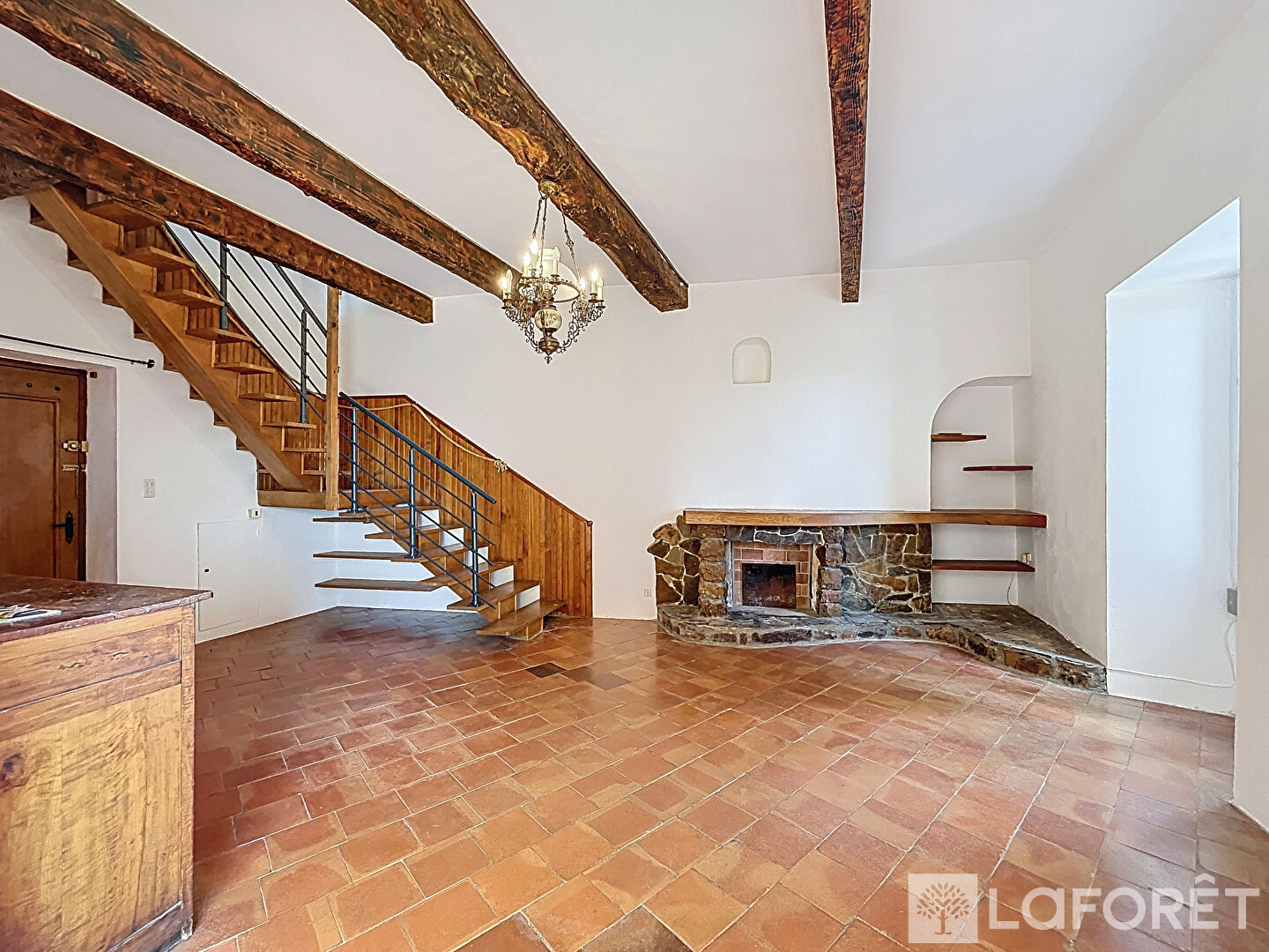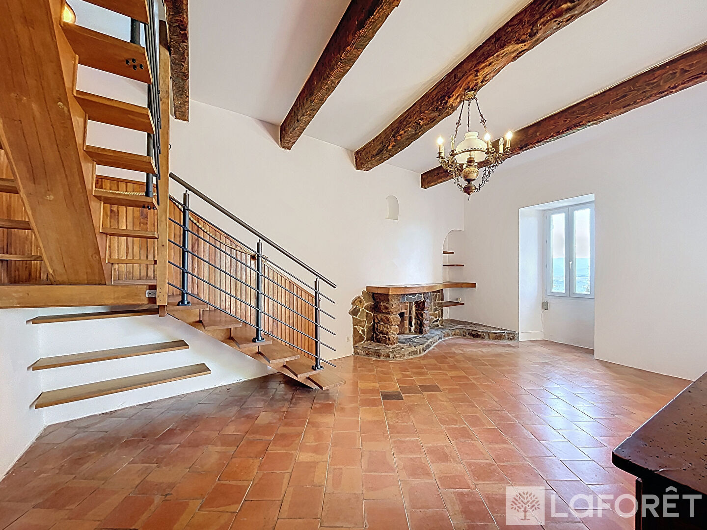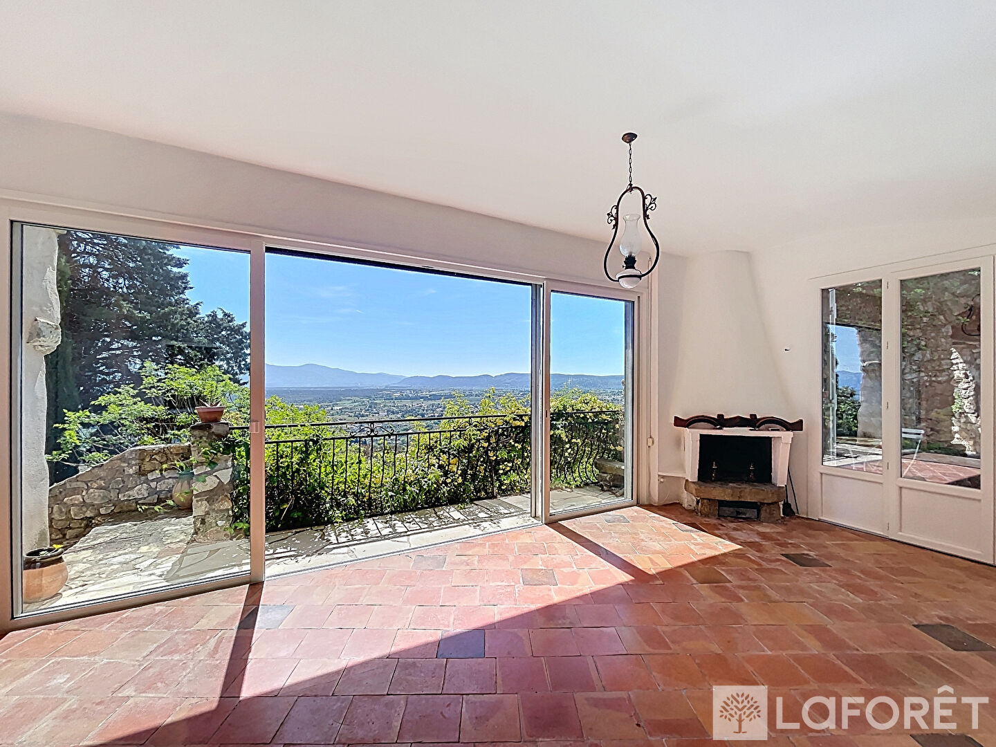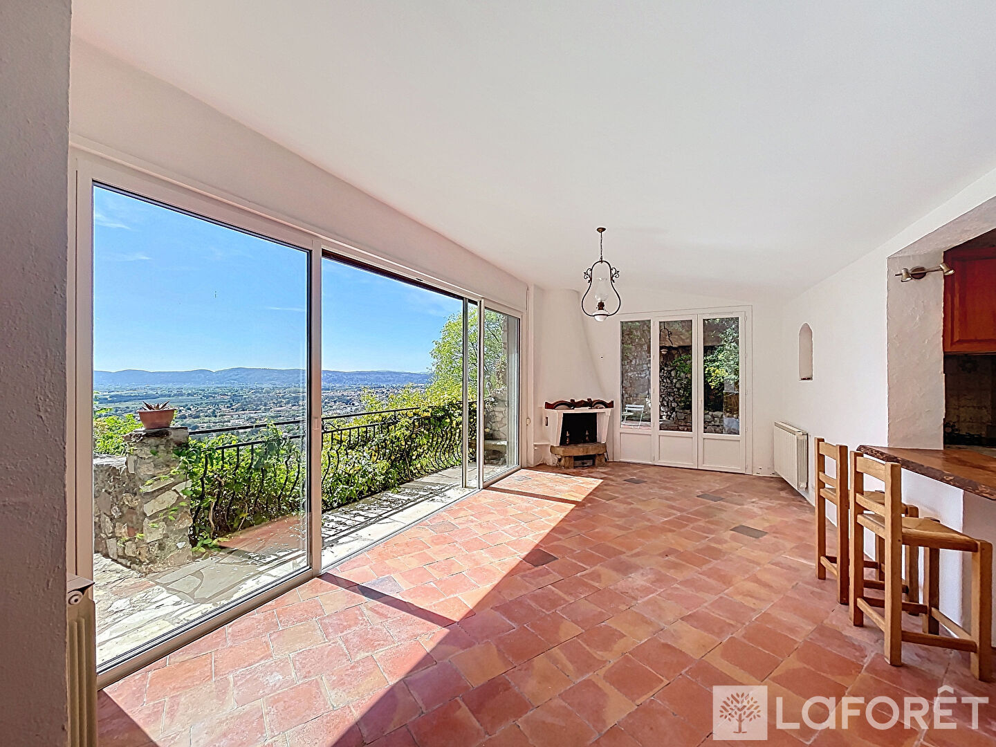 Dès l'entrée, vous découvrirez un vaste espace de vie d'environ 50 m², composé d'un salon et d'une salle à manger baignés de lumière, s'ouvrant sur une vue imprenable sur la plaine des Maures.