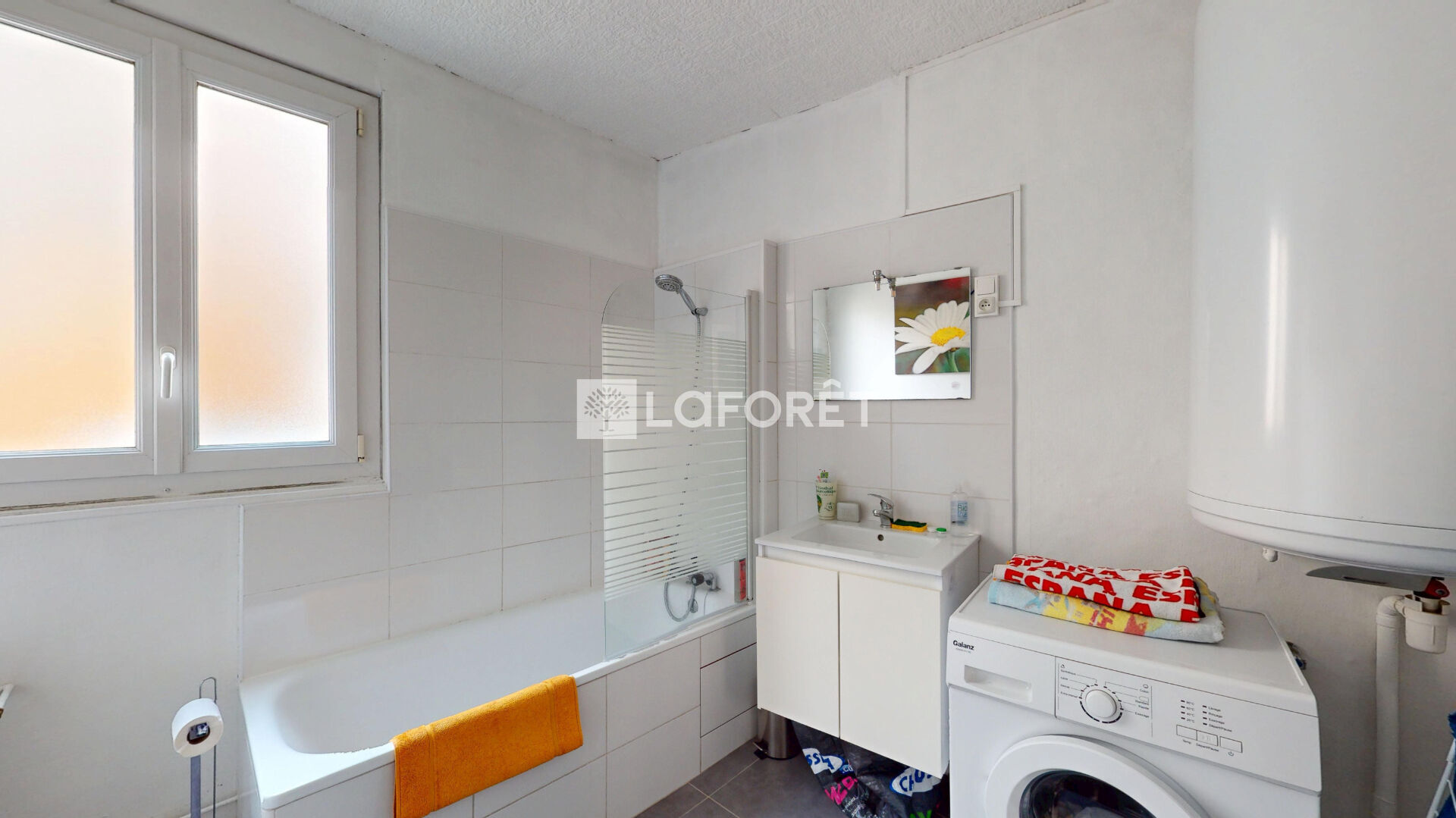L'entrée se fait par la cuisine séparée, aménagée et équipée, avec rangements et placard - La salle de bains, propre et moderne, propose une baignoire, meuble vasque avec rangement et WC.