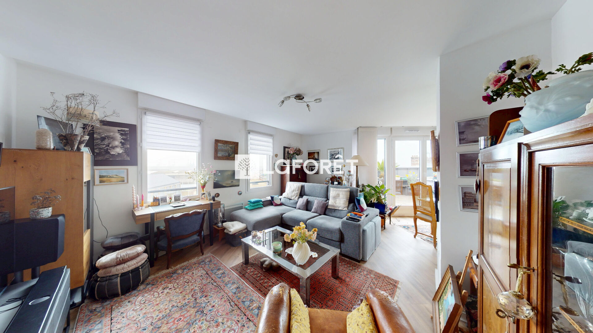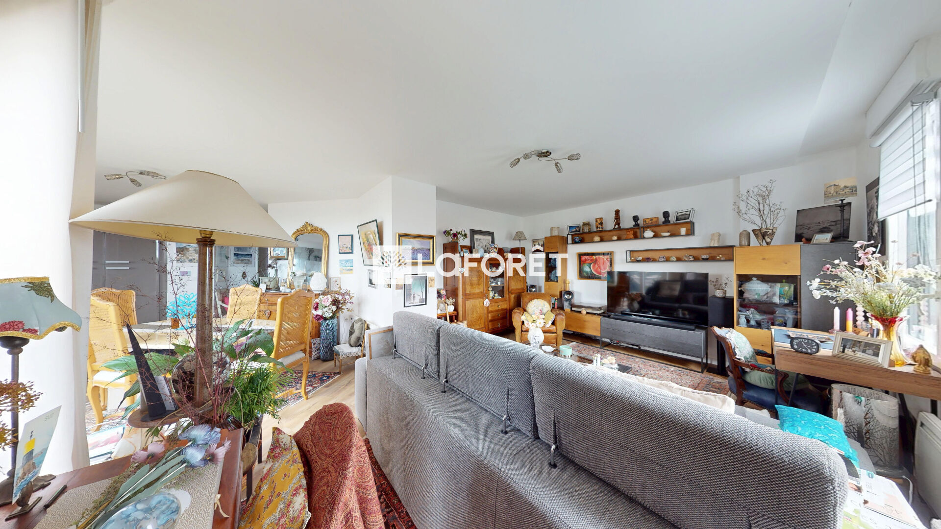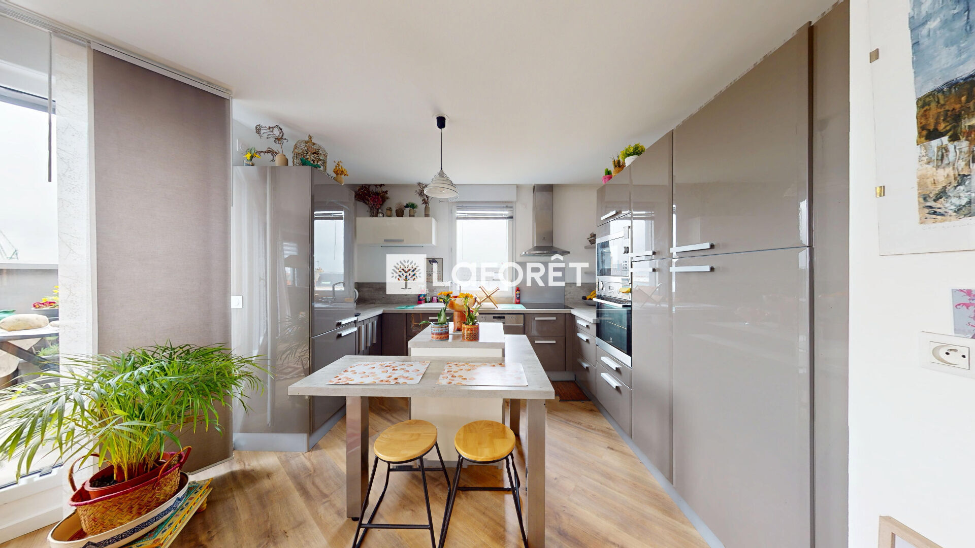 Le séjour, baigné de lumière, s'ouvre sur une élégante cuisine aménagée et équipée, idéale pour partager des moments conviviaux.