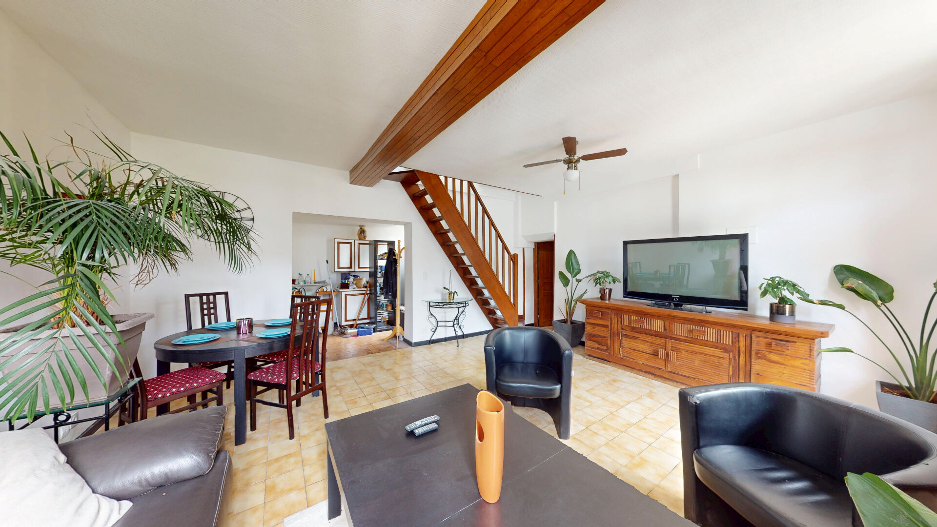 Dès l'entrée, vous découvrirez une pièce de vie lumineuse avec un séjour ouvert sur la cuisine, créant un espace convivial et fluide, parfait pour le quotidien comme pour recevoir.