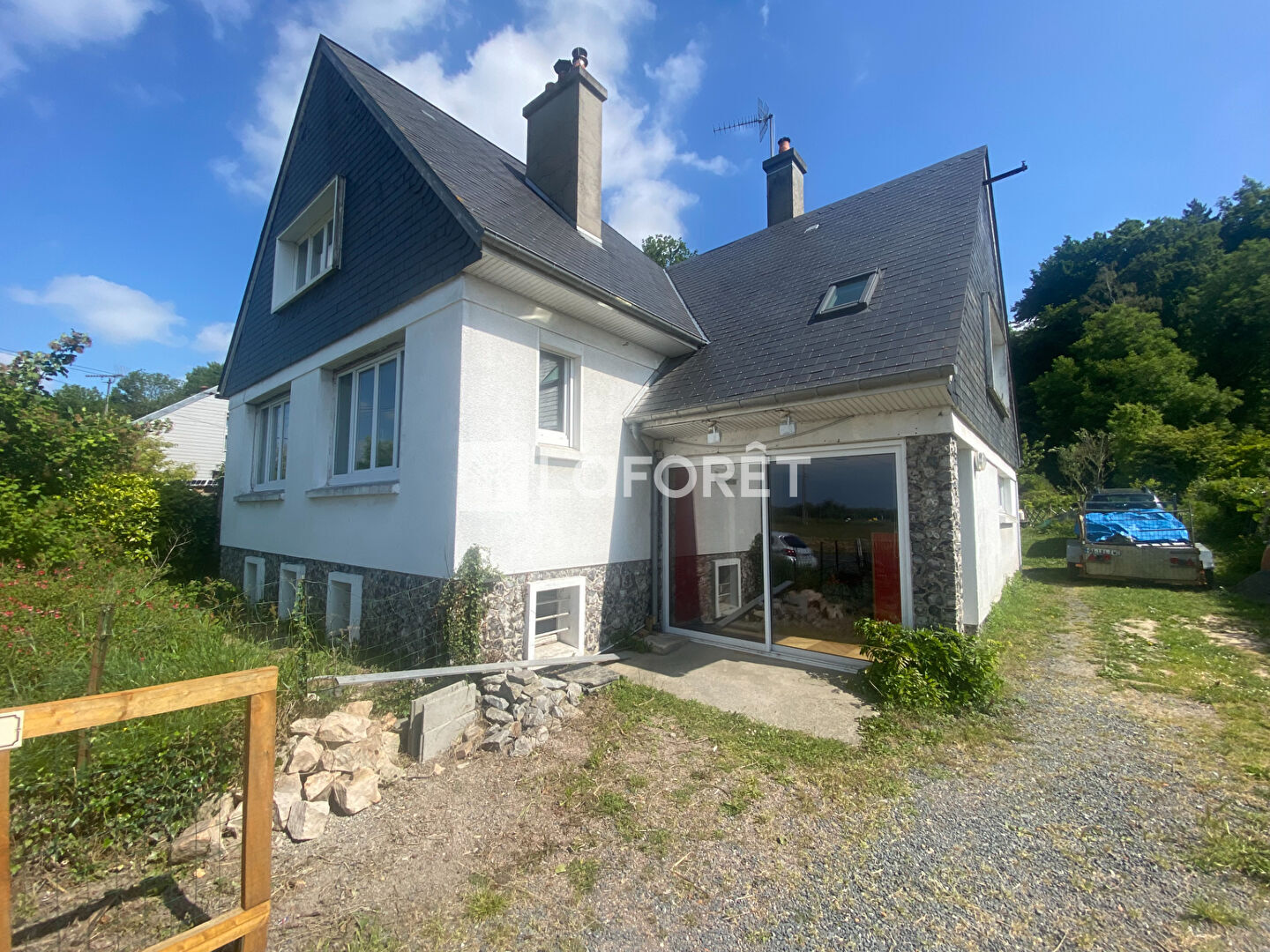 Le terrain ? Privatif, arboré, presque enveloppant, avec des coins à l'avant, à l'arrière, sur les côtés, bref : de l'air, du vert, et de quoi installer transats, potager ou cabane pour les enfants? ou pour vous.