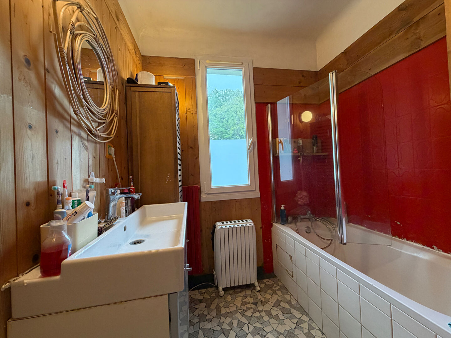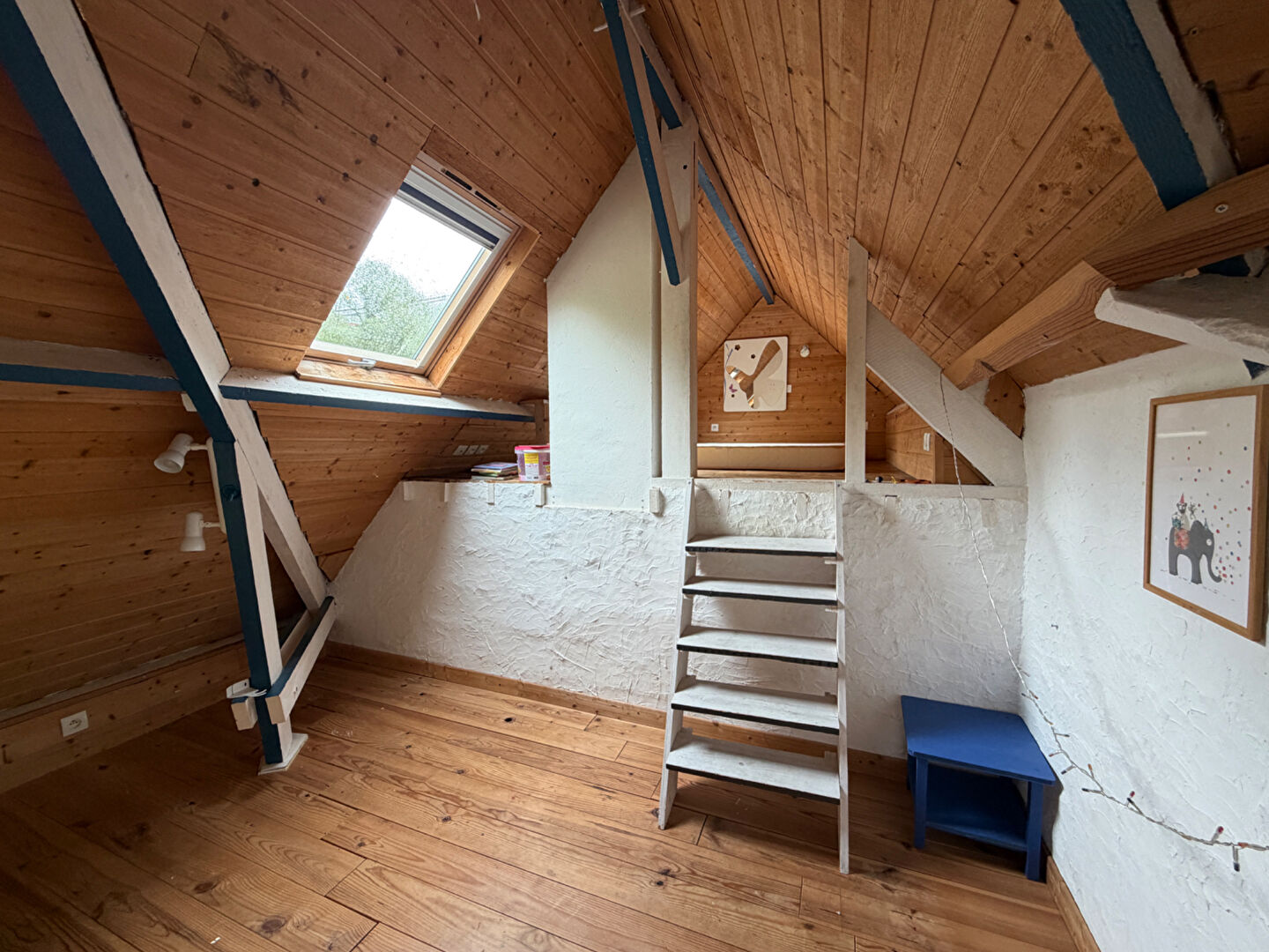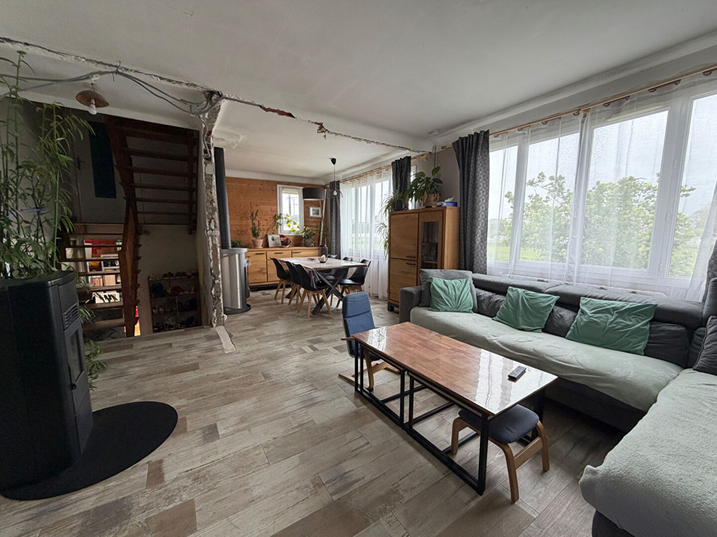 - Poêle à bois, parquet massif, grandes ouvertures