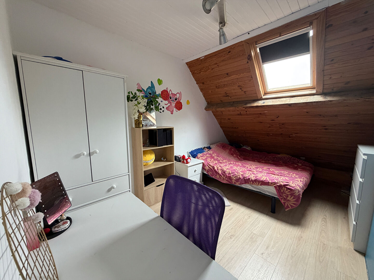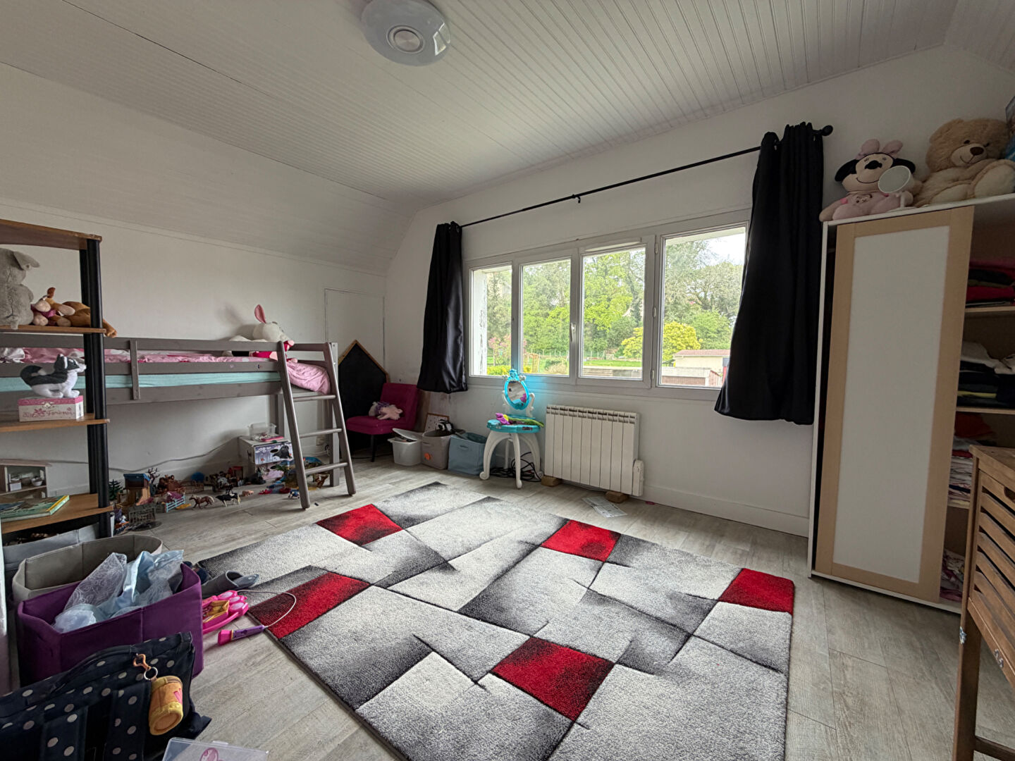 - Quatre chambres supplémentaires (de 9 à 13 m²), toutes parquetées, plus une salle d'eau moderne avec douche et jeu de fenêtres atypique mais stylé.