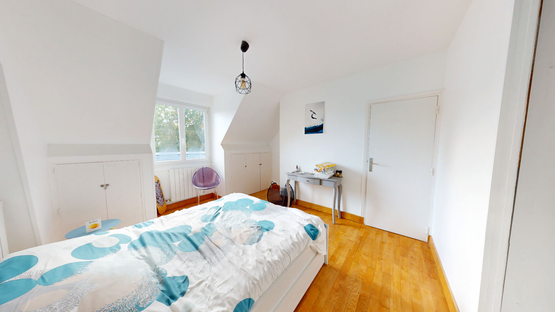 À l'étage, trois chambres spacieuses avec placards intégrés, une salle de bains avec baignoire et meuble vasque, des toilettes séparées, ainsi qu'une quatrième pièce pouvant faire office de grand dressing ou de bureau avec rangements.