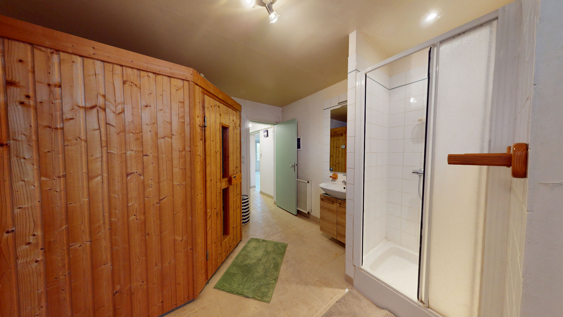 Le sous-sol total réserve de belles surprises : un garage, une laverie, une cave, une salle modulable (salle de sport, bureau, bibliothèque, ou salle de jeux), une partie sauna avec douche et WC, ainsi qu'une chaufferie.