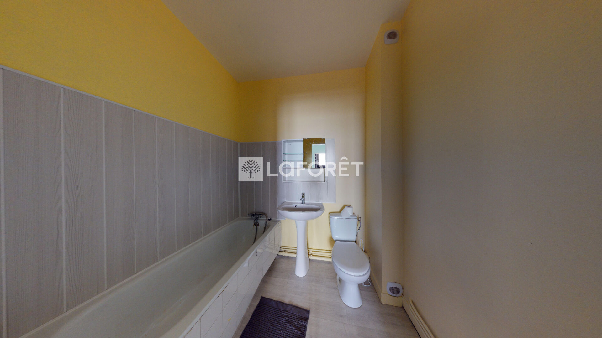 - Une salle de bains avec baignoire.