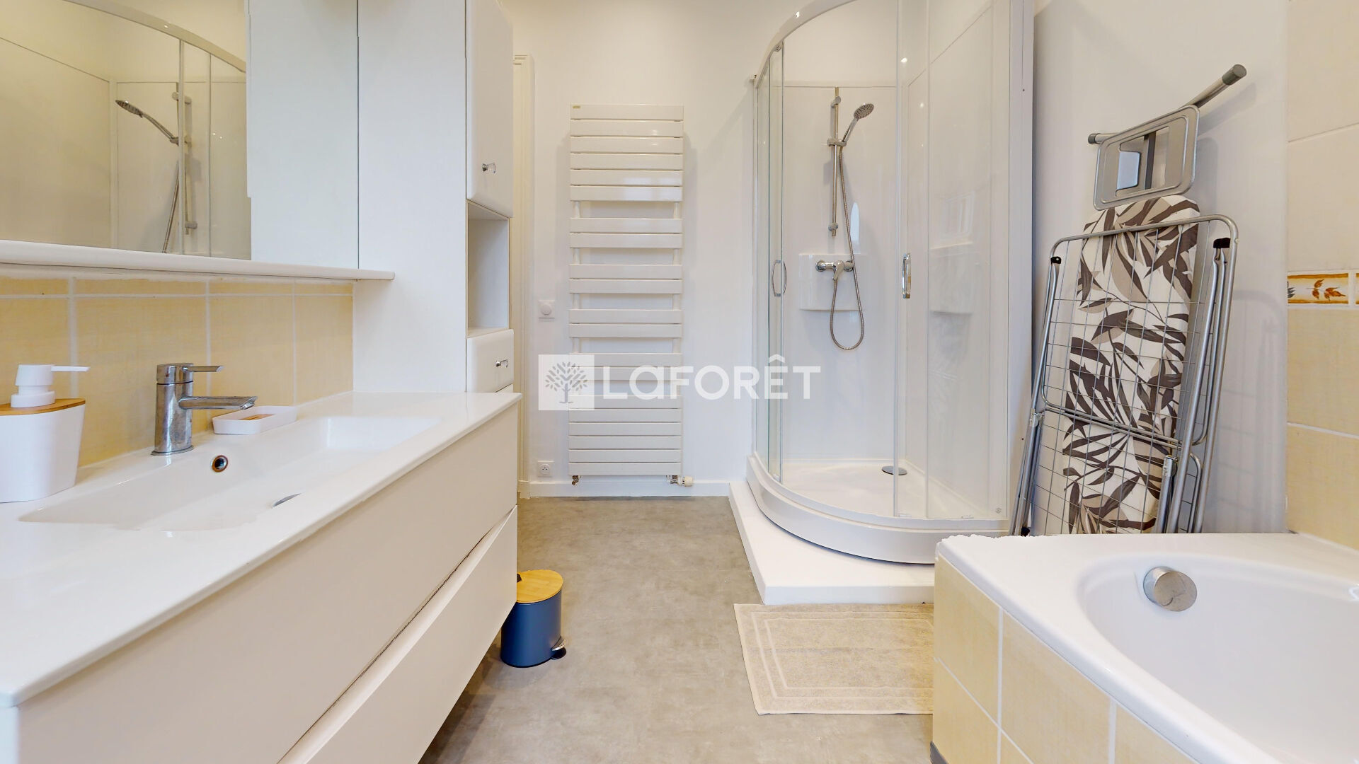 La salle d'eau est moderne et fonctionnelle, avec douche à l'italienne, et une baignoire. Les WC sont séparés pour plus de confort.