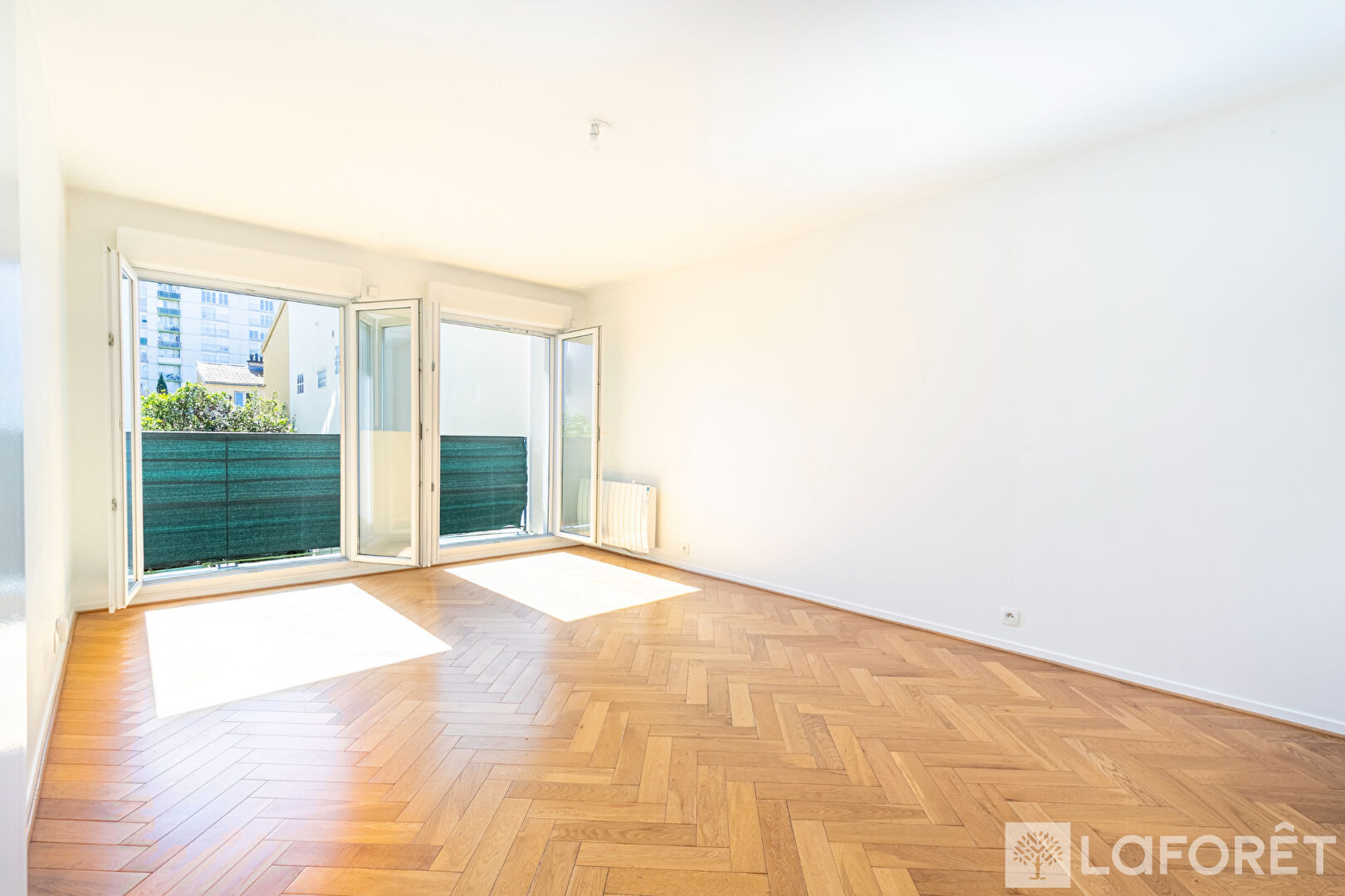 Appartement en double exposition composé d'une entrée desservant séjour avec balcon au calme sur verdure, cuisine attenante aménagée pouvant être ouverte, 2 chambres donnant sur rue calme, une salle de bains et des wc séparés.