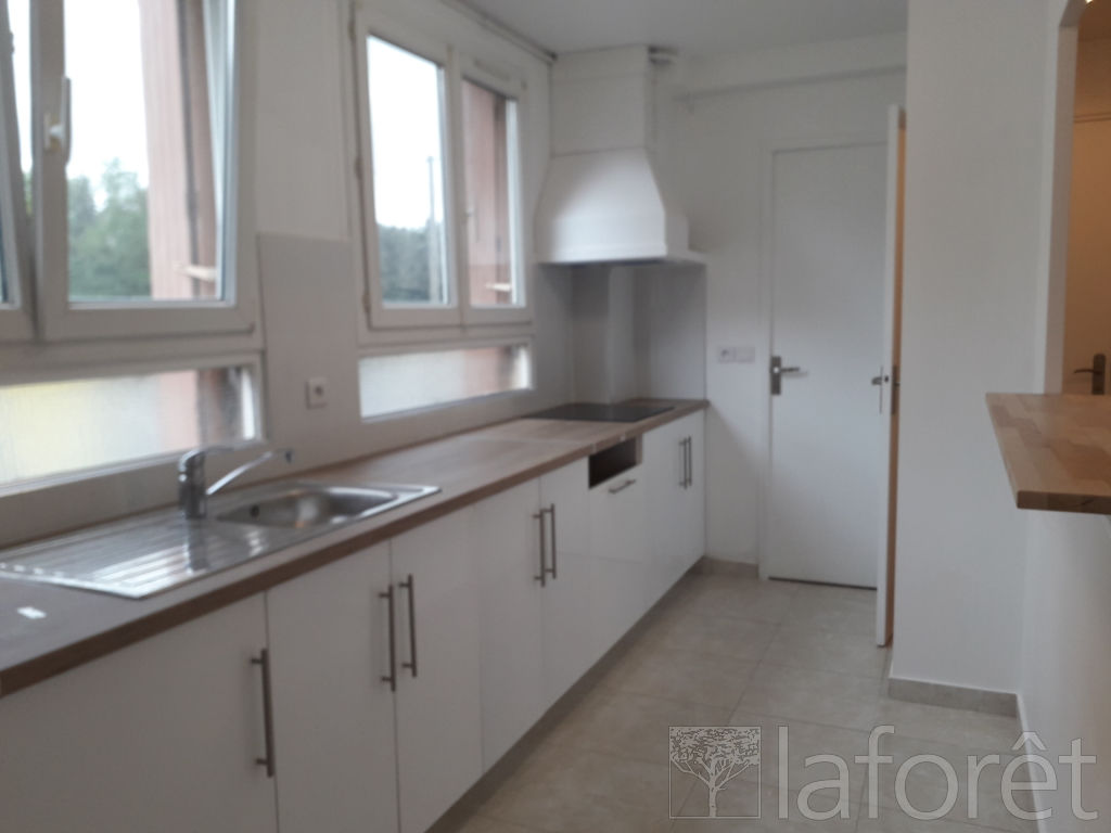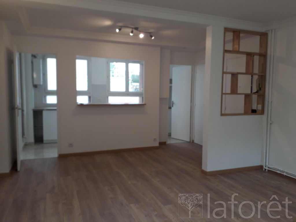 séjour donnant sur balcon avec cuisine ouverte, aménagé et semi équipée, trois chambres, salle de bain, wc indépendants, rangements.