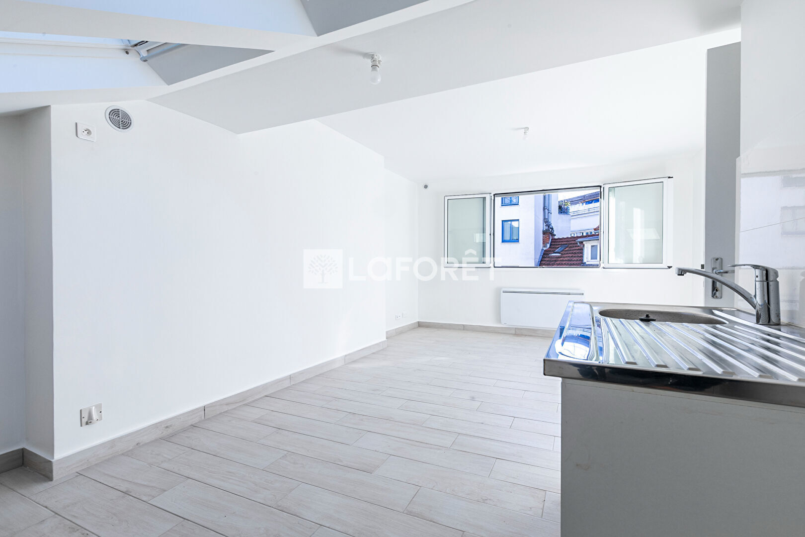 Pièce principale traversante avec coin cuisine, 1 chambre, salle de bains avec wc.