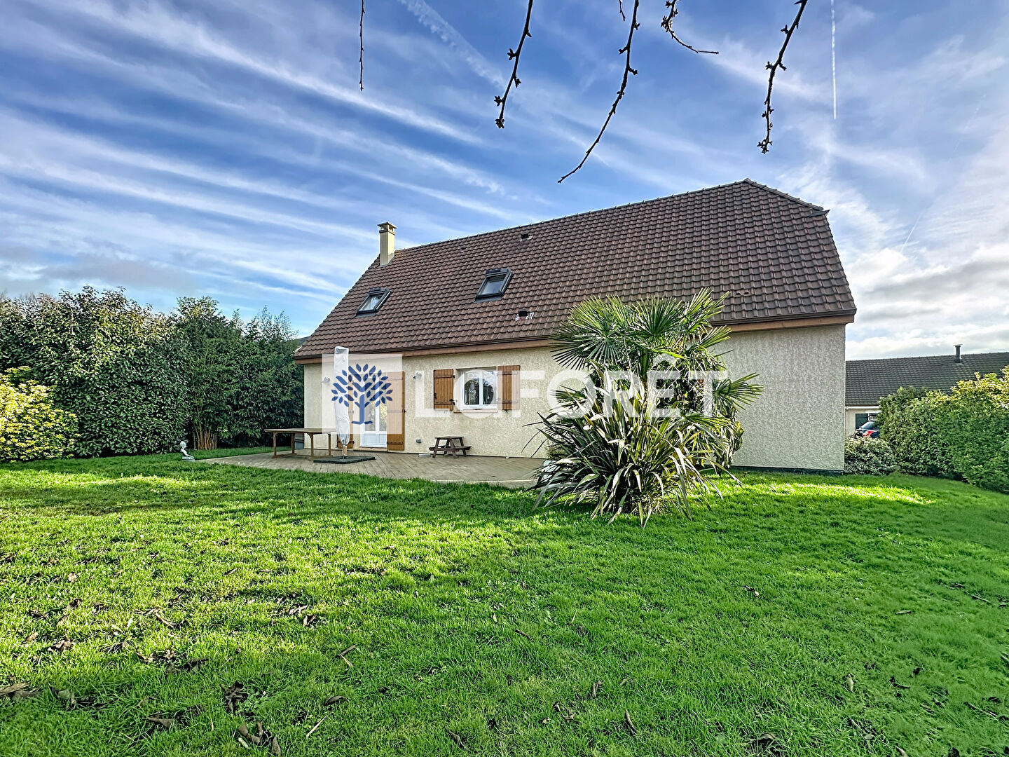 Le tout est édifié sur un jardin arboré, idéal pour profiter d'un cadre verdoyant et paisible.