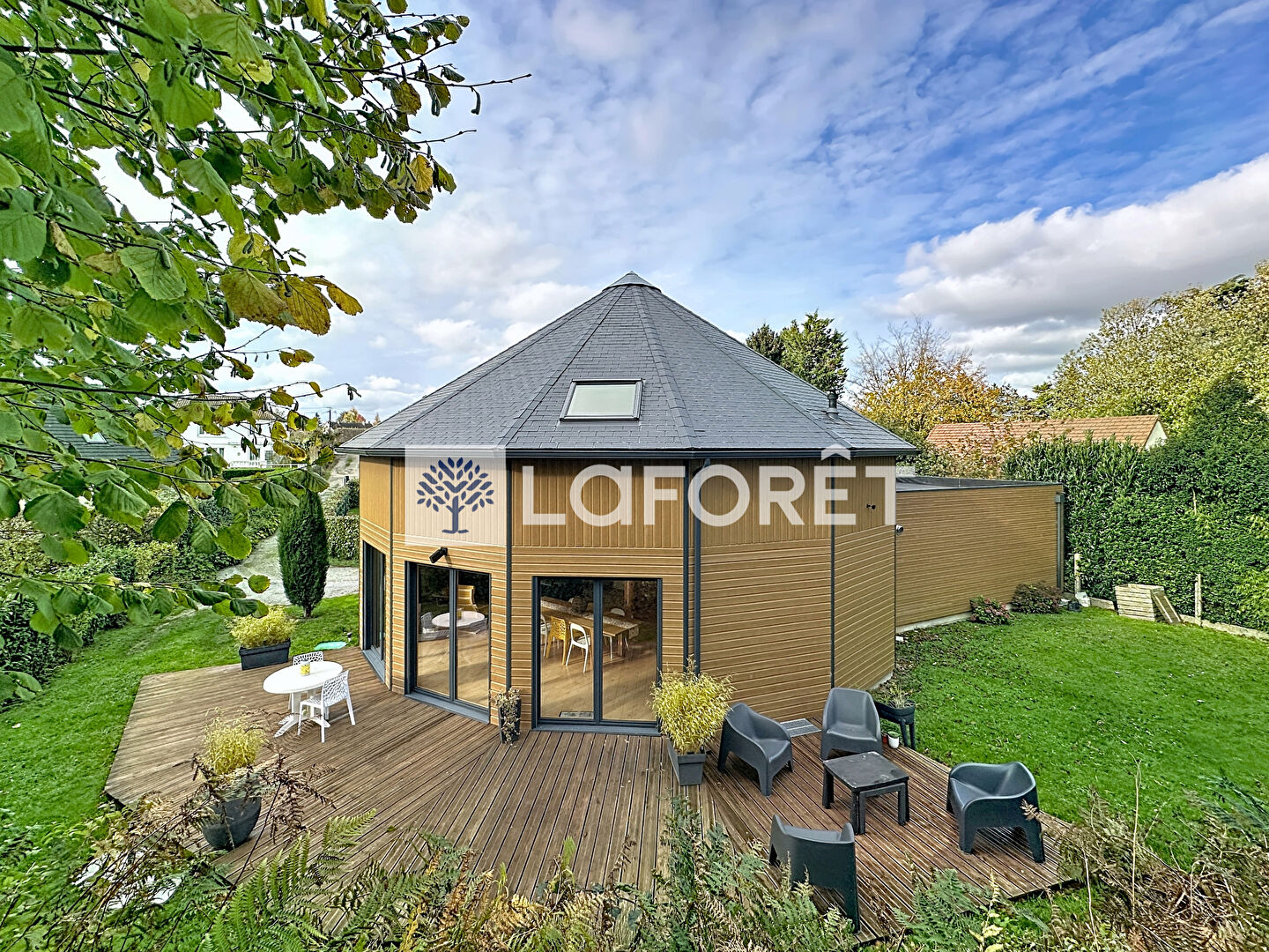 Construite en 2016, cette belle réalisation, véritable prouesse architecturale en ossature et bardage bois, de forme polygonale, mérite d'être visitée !