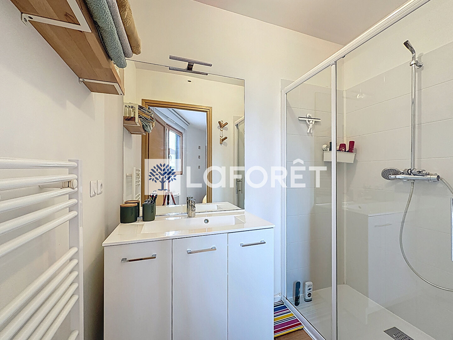 Elle comprend au rez-de-chaussée : une entrée avec rangements, un salon/séjour avec cuisine ouverte aménagée et équipée, une chambre avec salle de douche, un cellier et un garage.