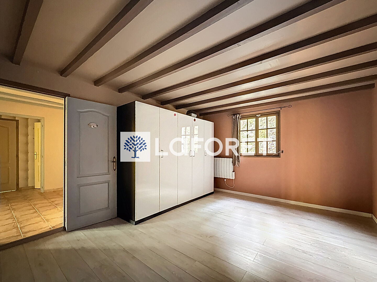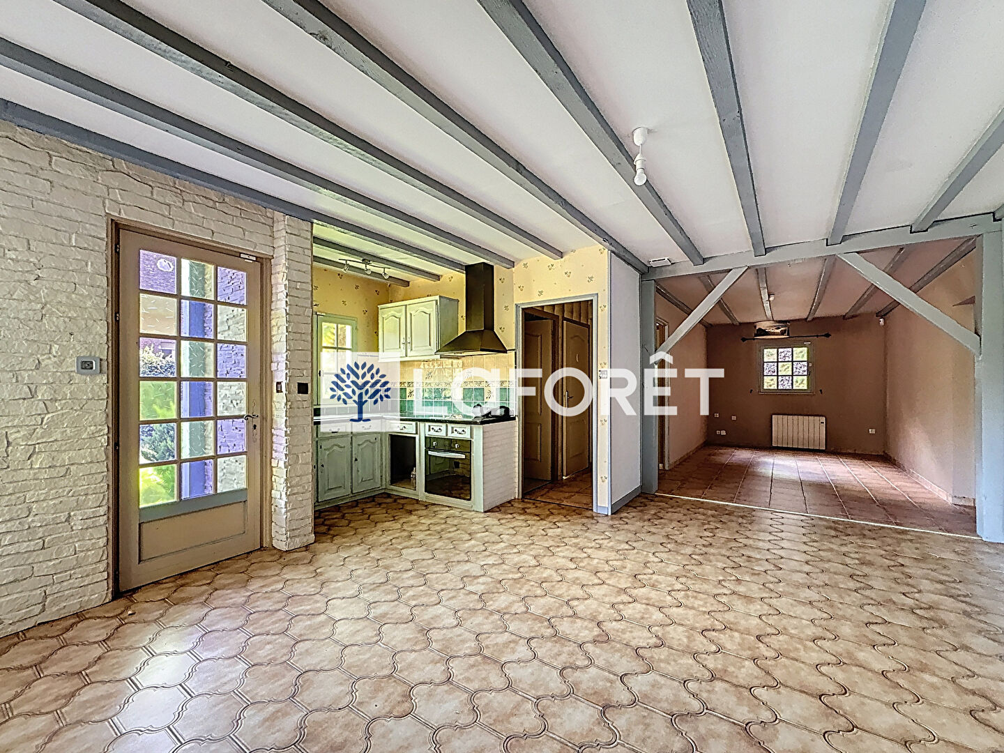 Séjour/Salon avec cheminée insert, Cuisine ouverte aménagé et équipée, dégagement, WC, salle de douche, deux chambres. Garage et stationnement extérieur.