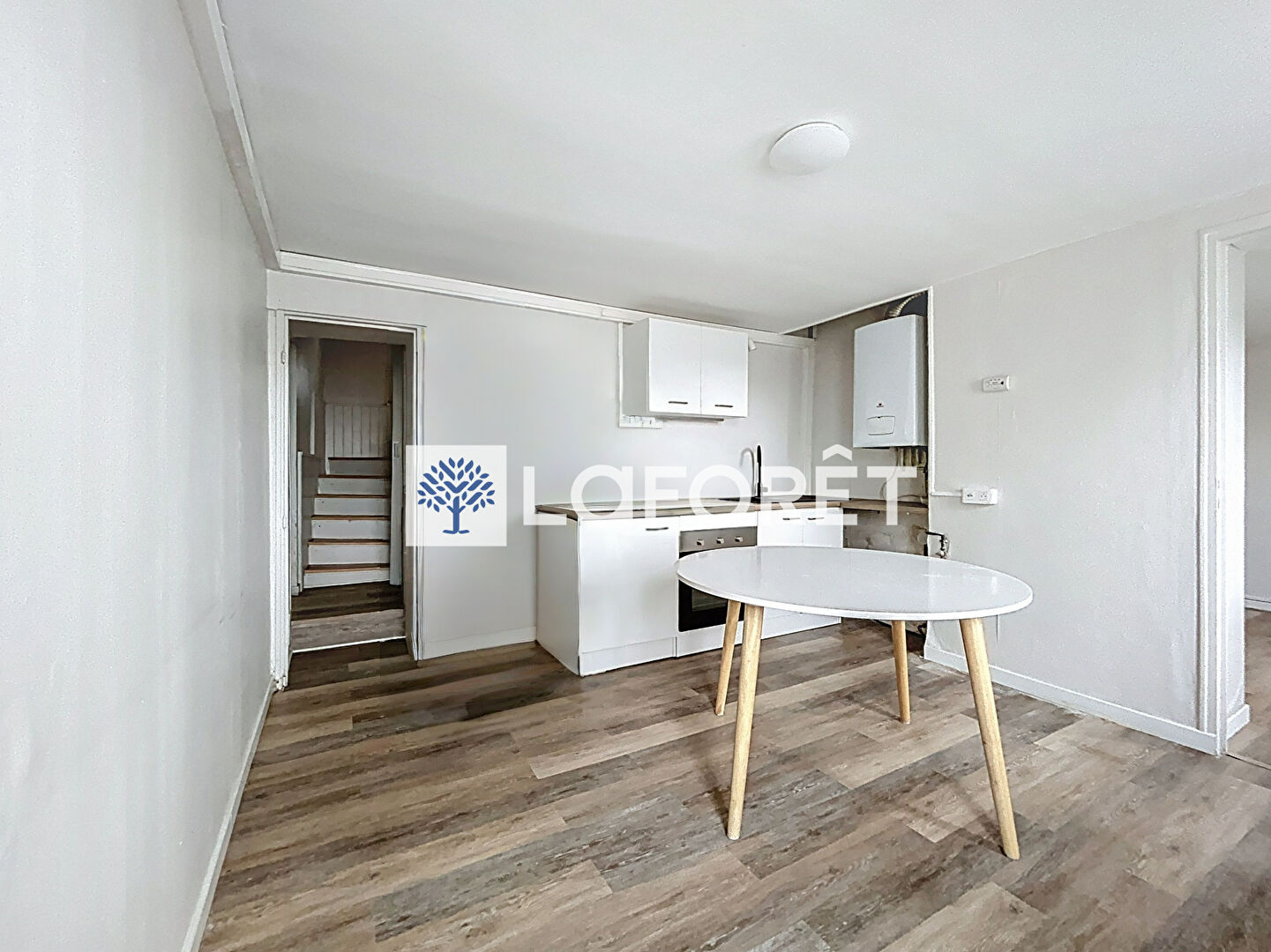 Ce bien est composé en rez-de-chaussée d'une entrée sur cuisine aménagée et équipée (plaque de cuisson), d'un séjour, d'un WC et d'une salle de bains.