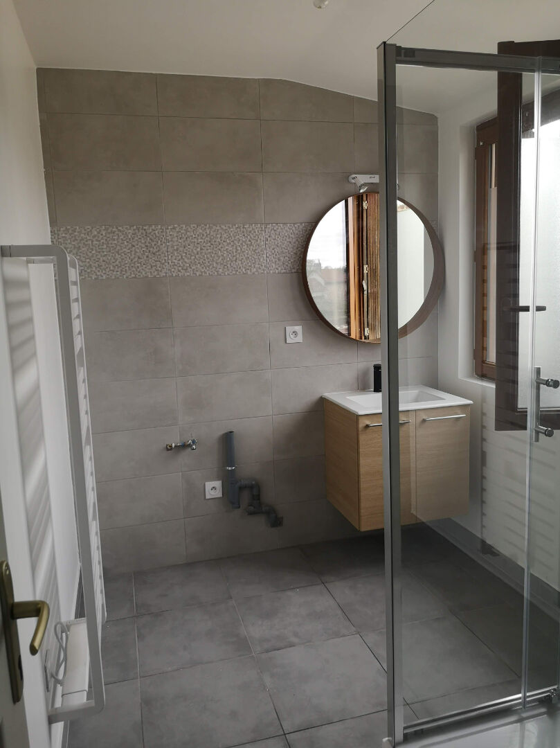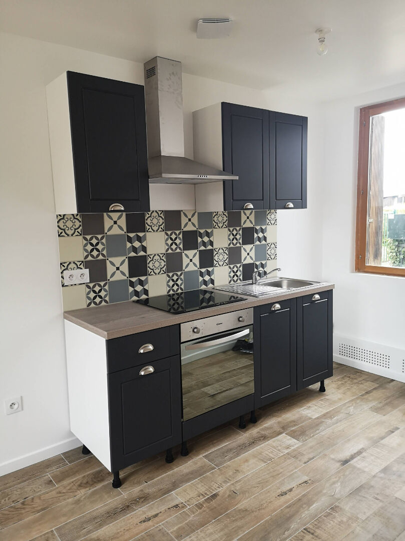 Ce bien est composé en rez-de-chaussée d'une entrée avec rangements, d'un séjour ouvert sur une cuisine aménagée et équipée (plaque de cuisson, four et hotte).