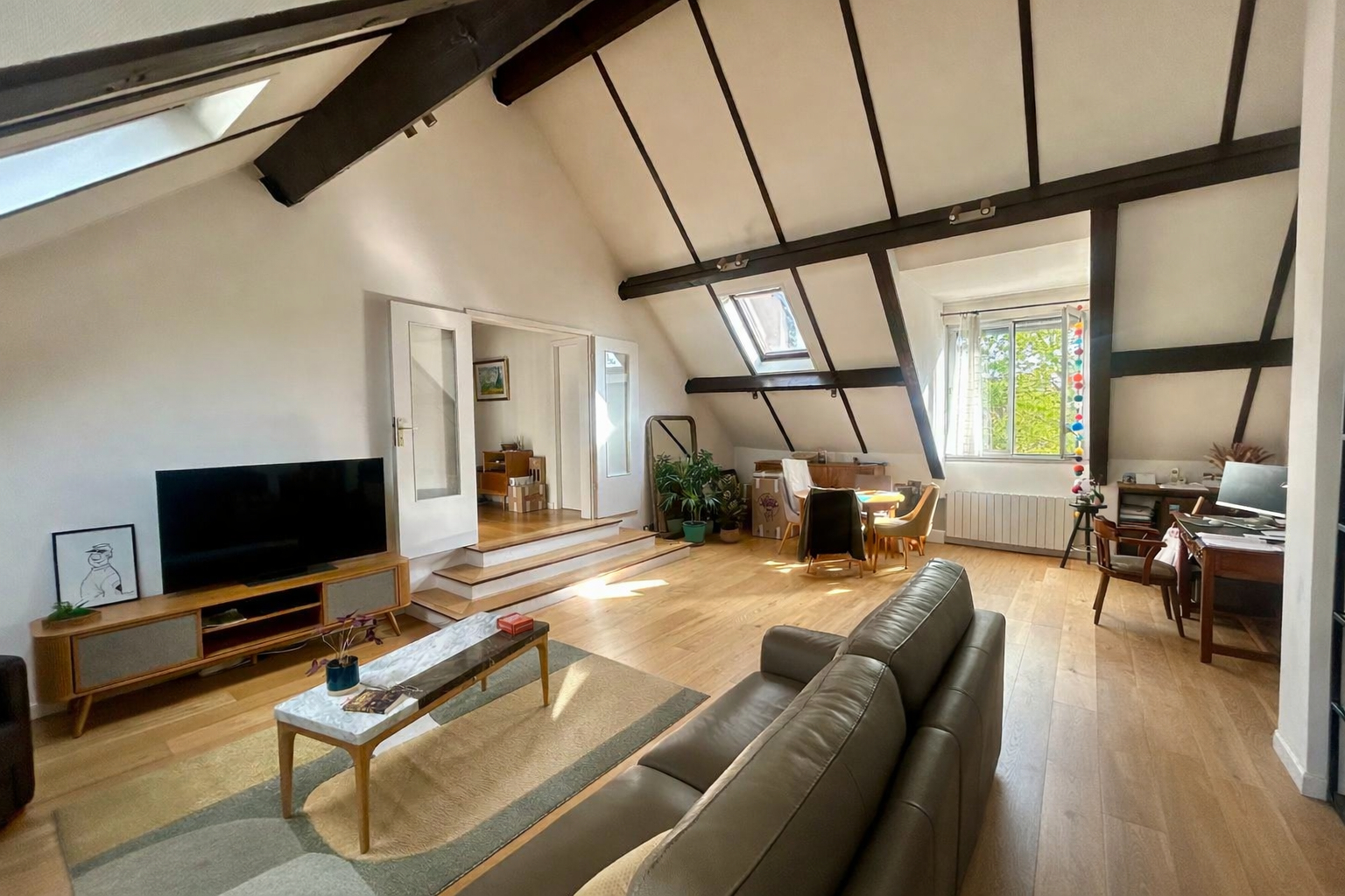 Il se compose d'une entrée, d'un superbe séjour double cathédrale offrant près de 50 m² au sol, baigné de lumière, d'une cuisine indépendante, de trois chambres dont une avec balcon, d'une salle d'eau, d'une salle de bains ainsi que de WC séparés.
