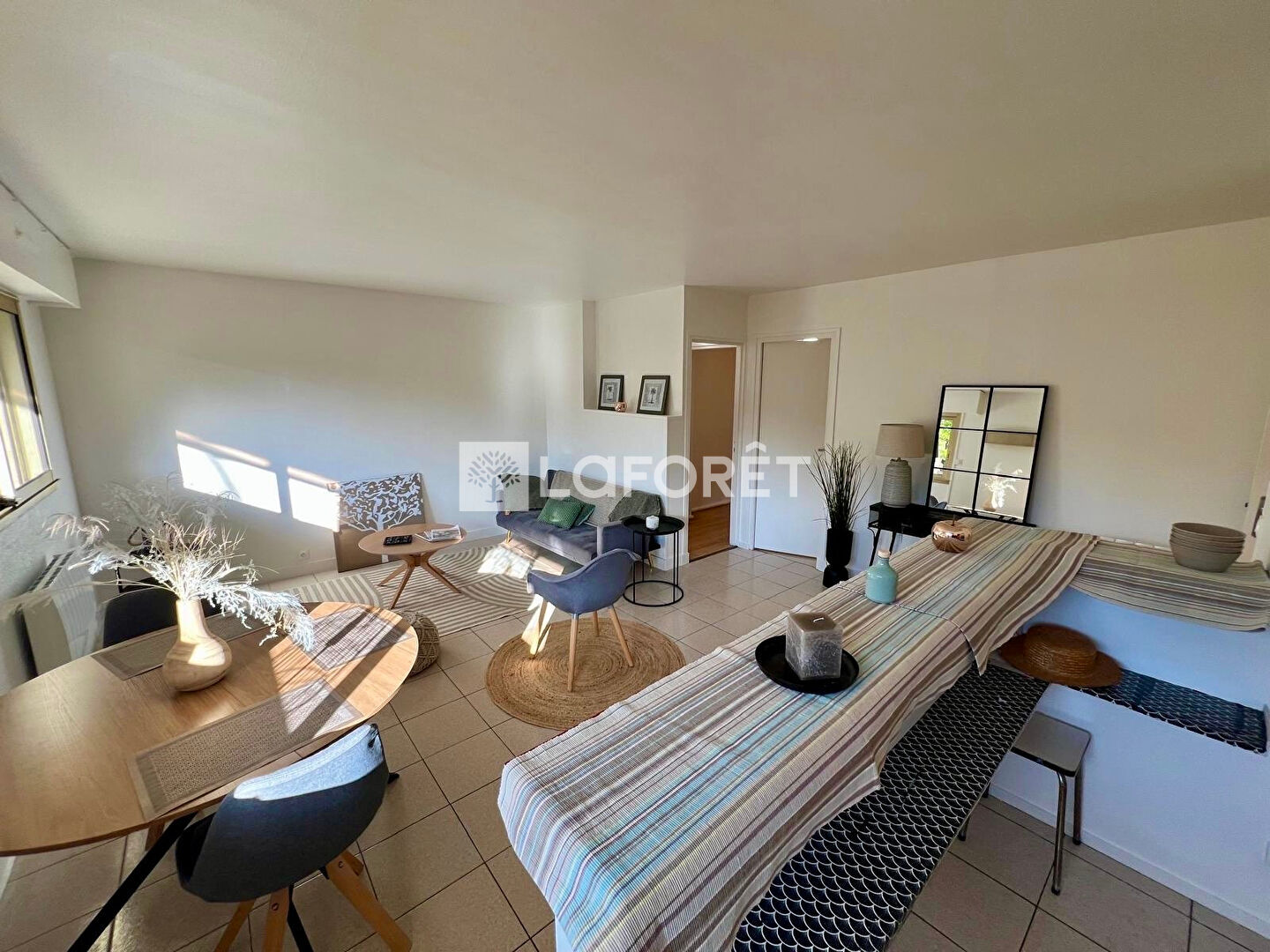 Il est constituée d'une entrée avec placards, un espace cuisine ouverte sur salon ( 26,53m2) , une salle d'eau, un coin bureau/dressing, une grande chambre de 20m2 avec de nombreux placards.