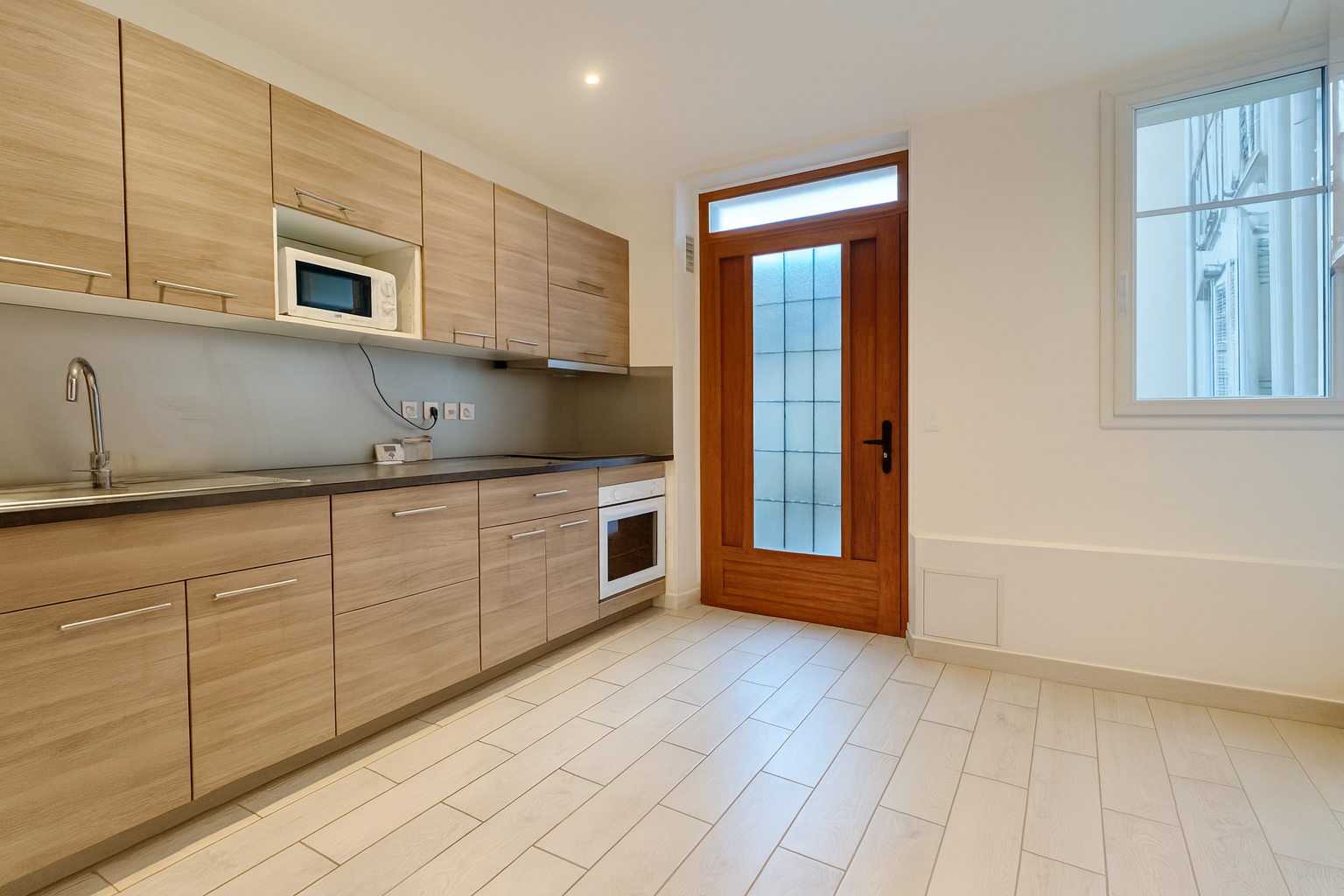 Il se compose d'une entrée, d'un séjour semi-ouvert sur une cuisine aménagée et équipée récente donnant à sur une cour à l'arrière de l'immeuble au calme , d'une chambre, et d'un bureau pouvant facilement être aménagé en chambre d'enfant et d'une salle d'eau.