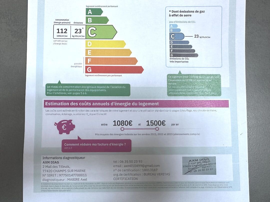 Les coûts sont estimés en fonction des caractéristiques de votre logement et pour une utilisation standard. Montant estimé des dépenses annuelles d'énergie pour un usage standard entre 1 080,00 € et 1 500,00 € indexées aux années 2021, 2022 et 2023 (abonnement compris).