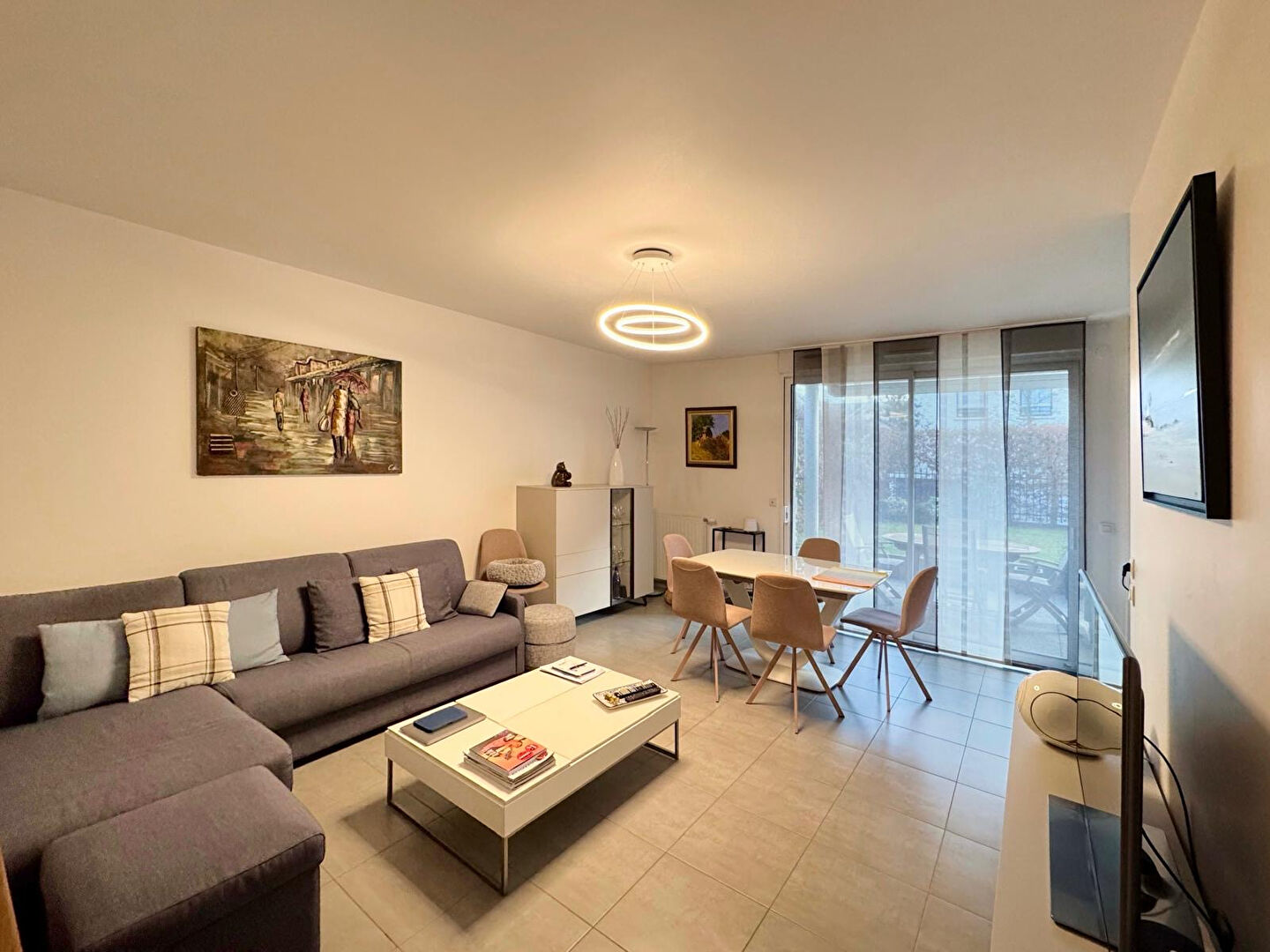Il se compose d'une entrée avec rangements, d'un séjour double avec cuisine ouverte, le tout donnant sur une terrasse exposée plein sud avec jardin privatif au calme sur les jardins de la copropriété.