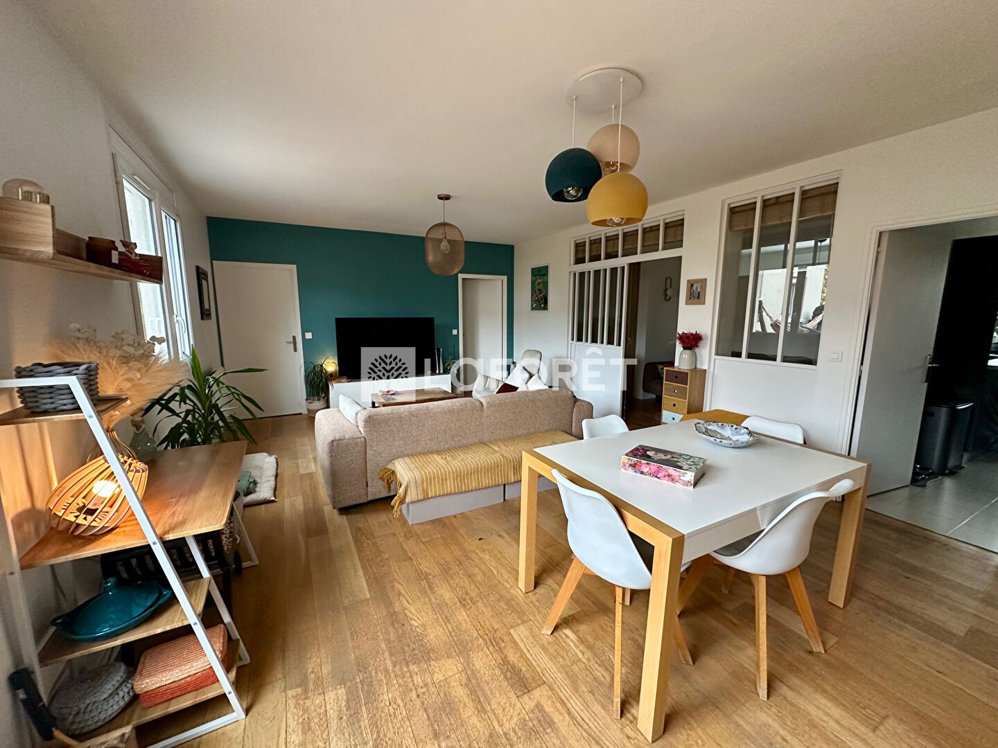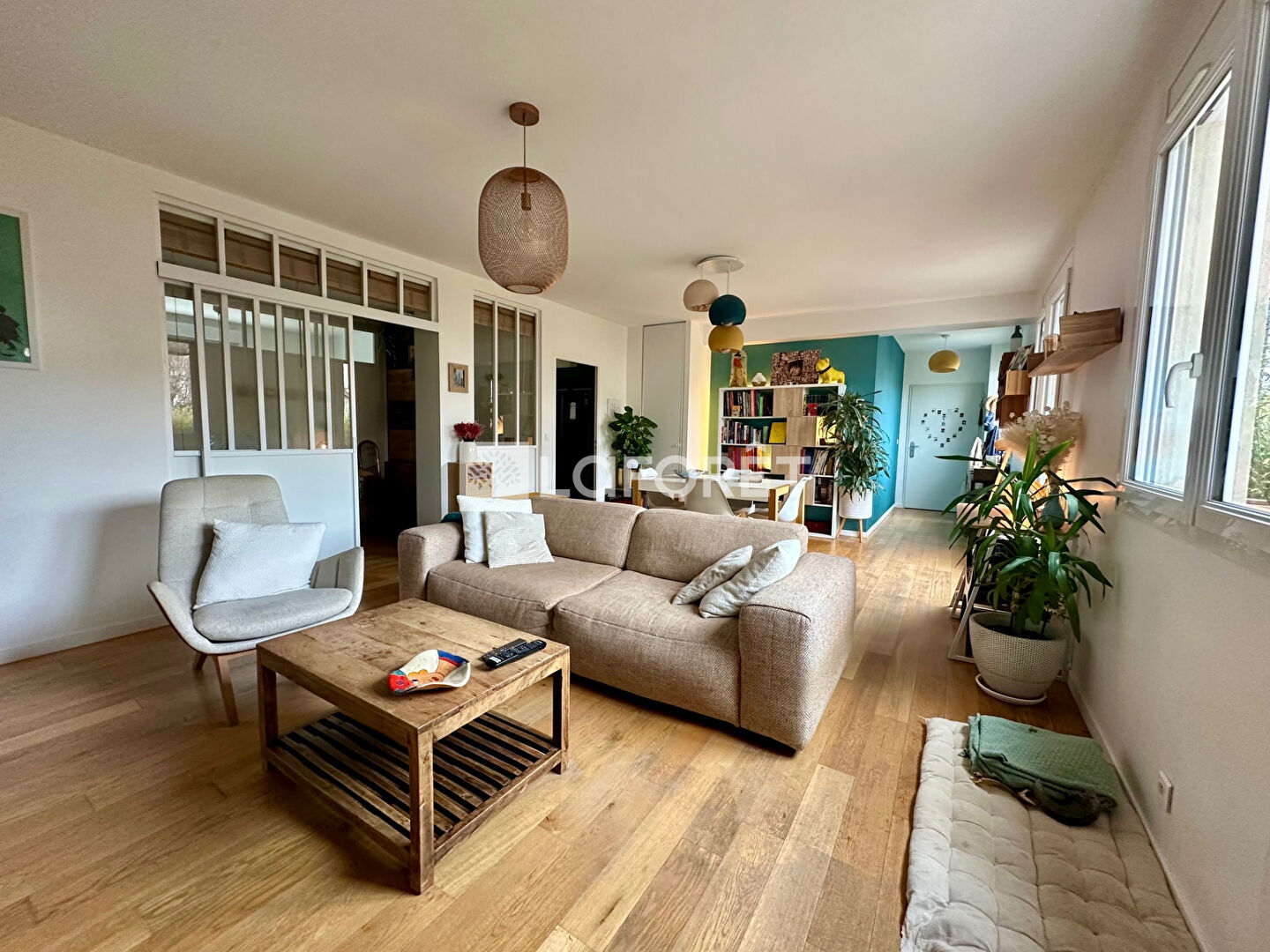 D'une superficie de 116,60m2 loi Carrez avec une double exposition traversante ouest/est, il distribue de grands volumes pour chaque pièces.