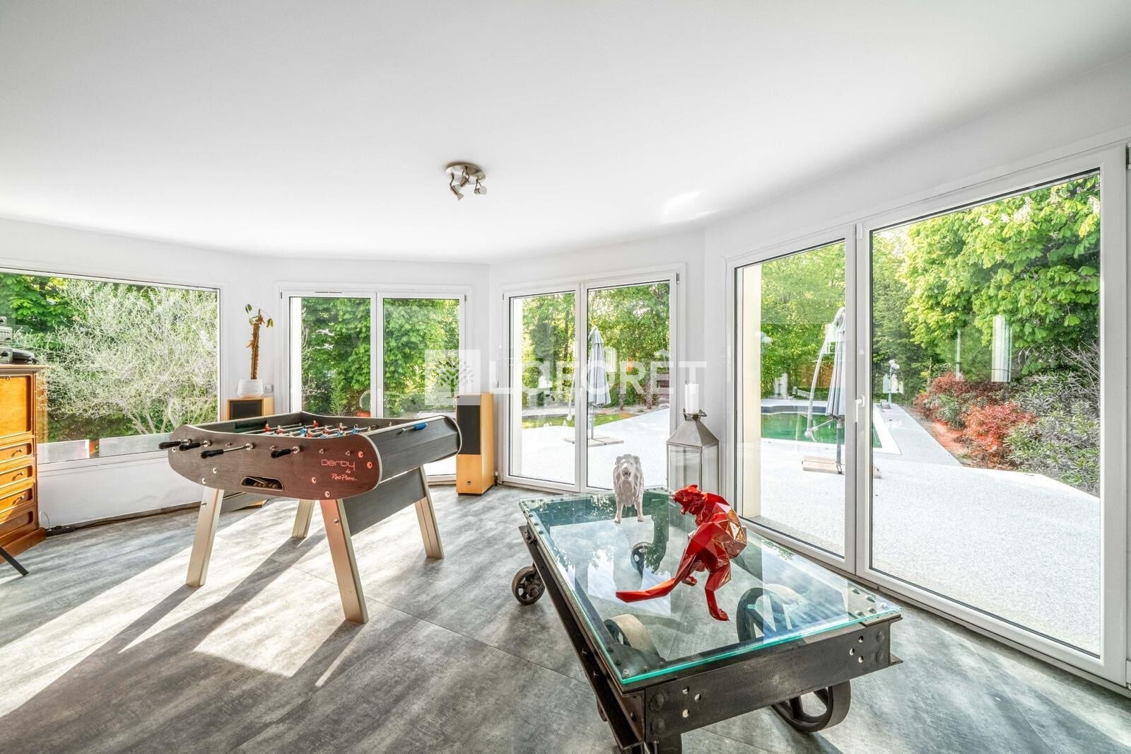 Très bien agencée elle se compose sur le niveau principal d'un espace de vie de 110m2 avec accès direct sur les terrasses entourant la maison, le jardin, la grande piscine chauffée, et même un terrain de pétanque. Pour la partie nuit vous profiterez de deux grandes chambres ( dont une suite parentale), une buanderie, la salle de sport, la pièce technique, wc.