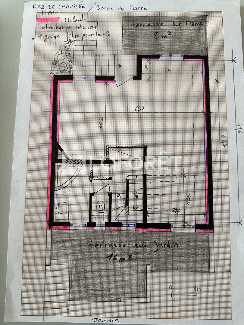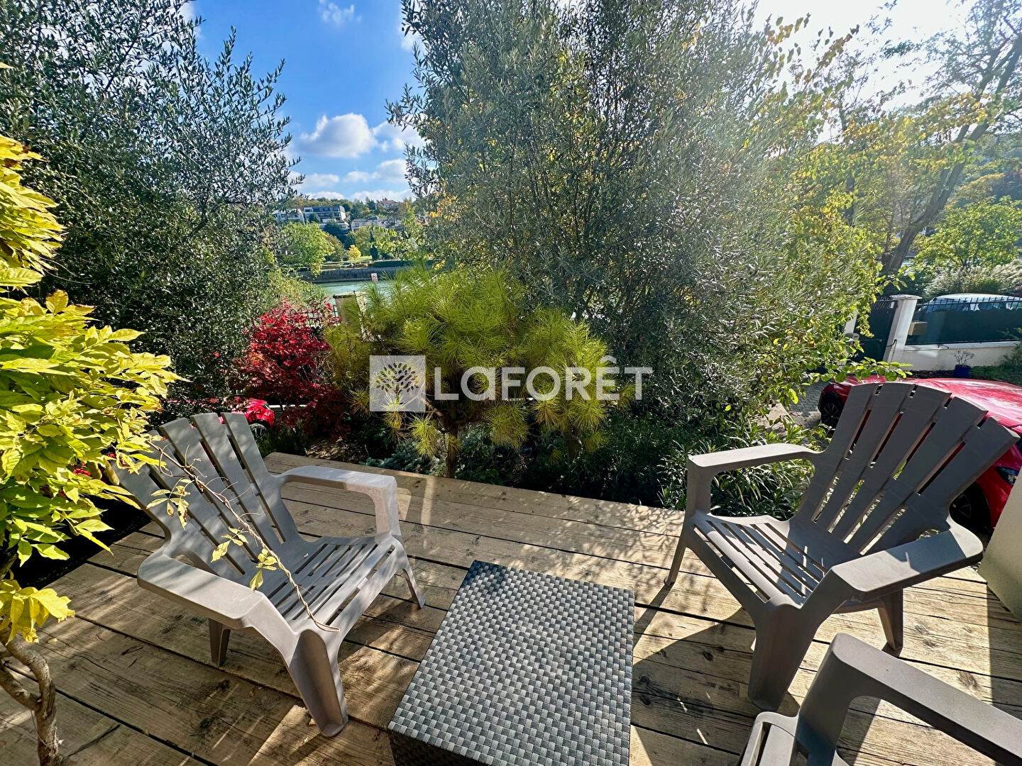 Sur le niveau principal, la maison se compose d 'un espace de vie cuisine et salon/séjour avec accès direct à deux terrasses (sud/est et nord/ouest) offrant une vue Marne et jardin. Salle de bains et wc indépendant.
