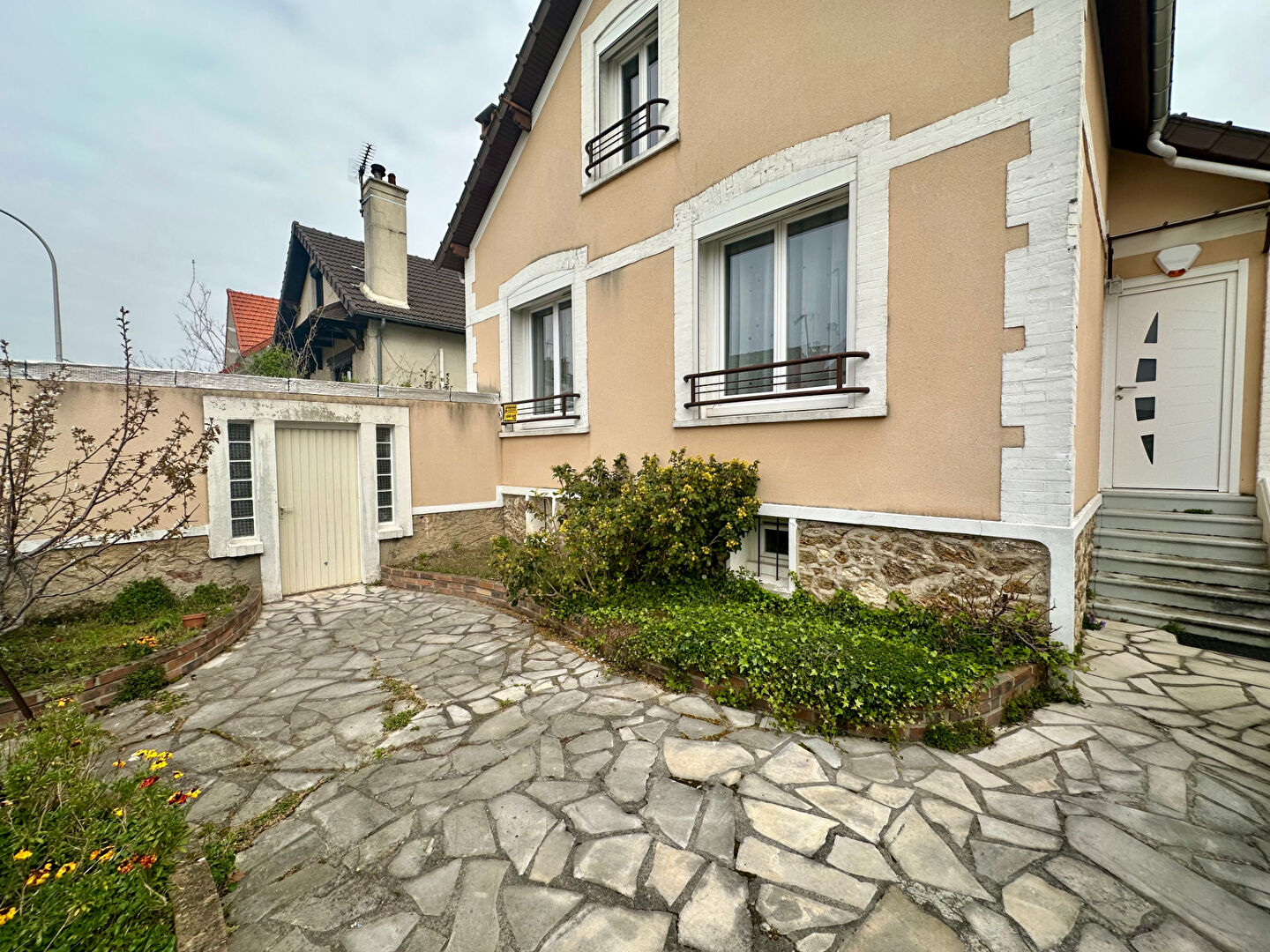 la maison est située dans une rue pavillonaire très au calme tout en étant située à 500 m des commerces et services, des écoles, et à1km du RER.