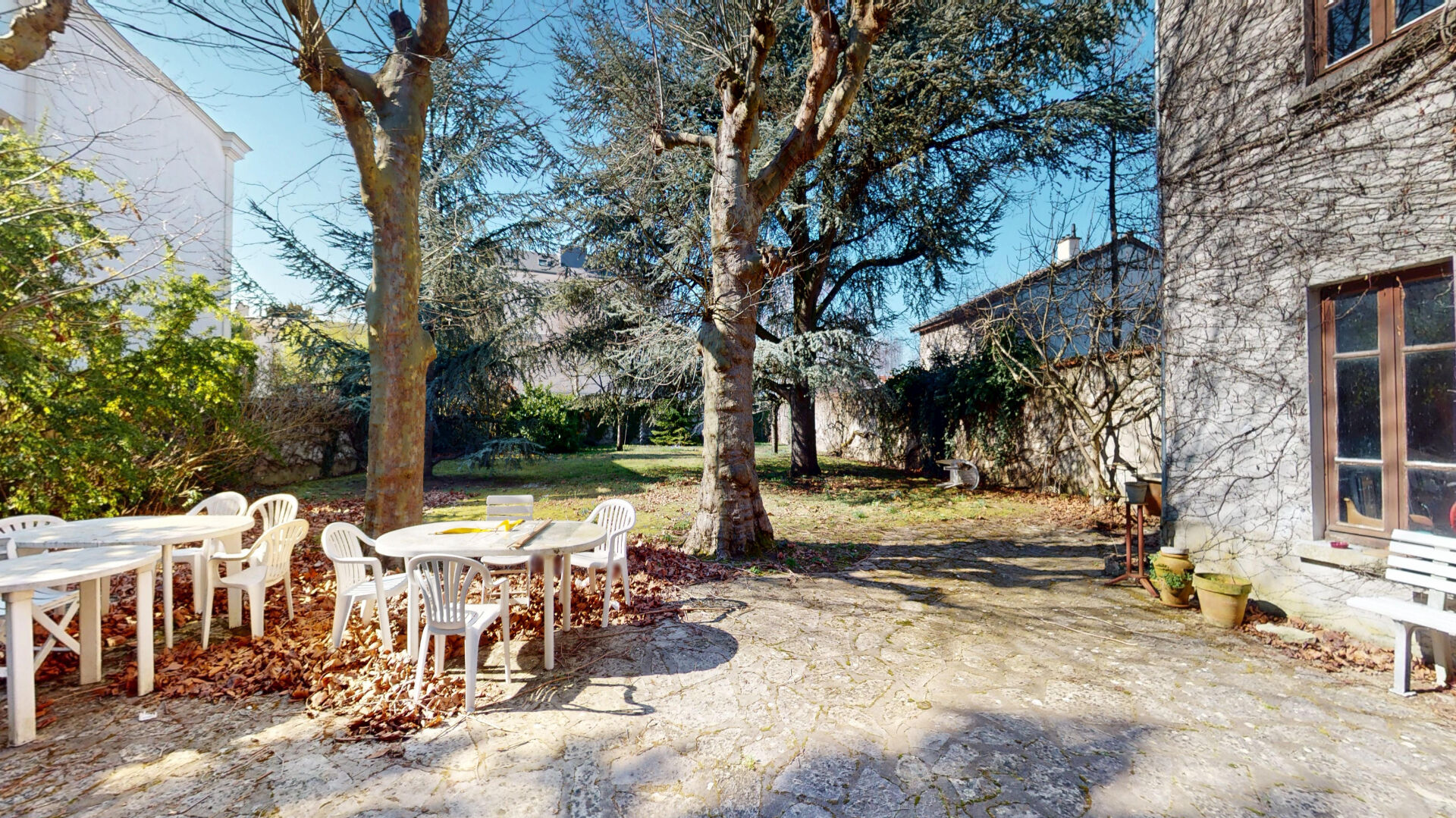 En retrait de la rue, la propriété s'ouvre sur un magnifique parc paysager sans vis-à-vis, bénéficiant d'une double exposition Est-Ouest, offrant une luminosité exceptionnelle tout au long de la journée.