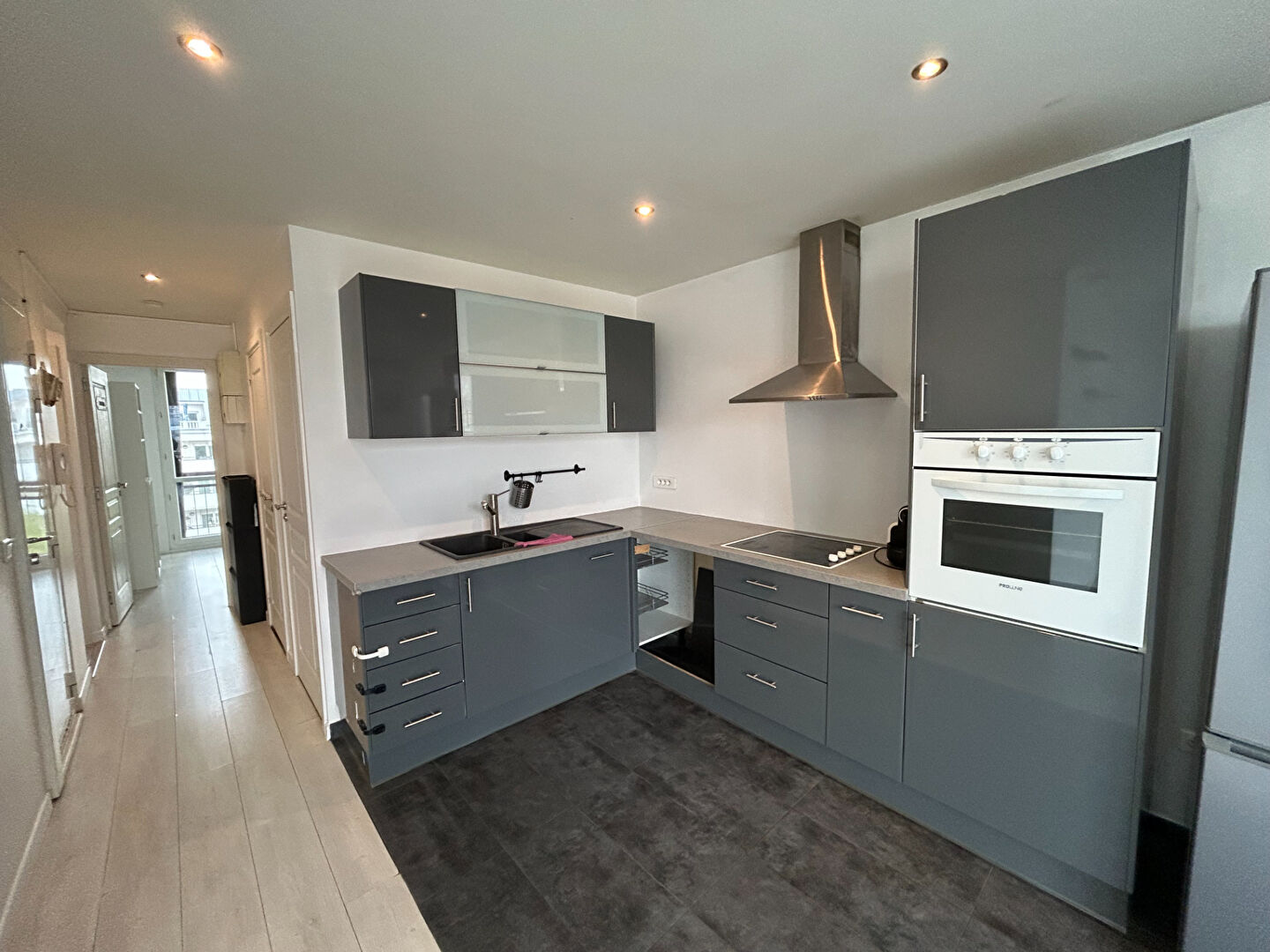 Le logement se compose d'une entrée/couloir, d'un séjour avec cuisine aménagée et équipée, deux chambres, une salle d'eau avec un WC séparé et un espace de rangement.