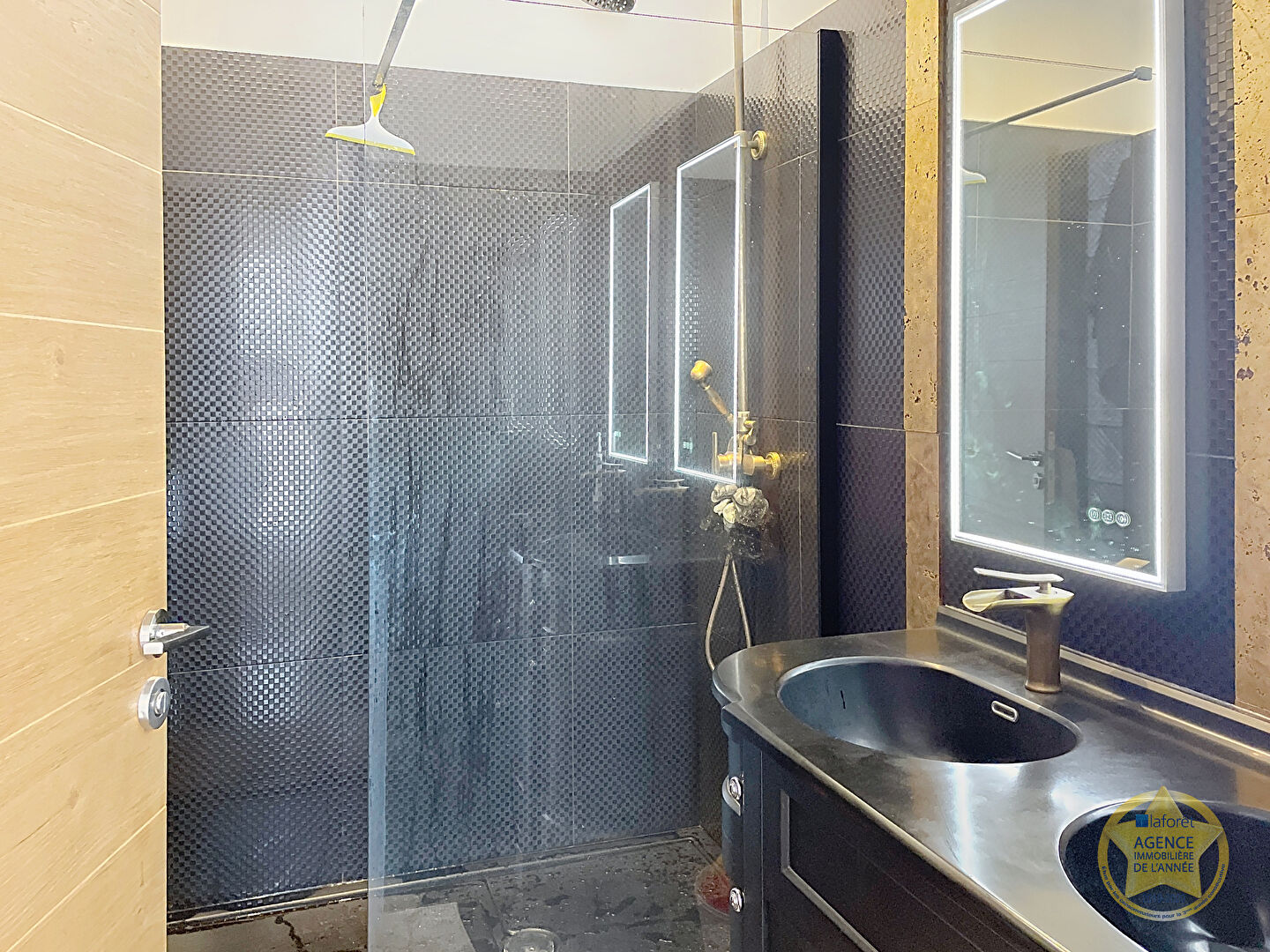 Elle se compose d'une entrée, d'un séjour lumineux avec accès à la terrasse, d'une cuisine équipée, de trois chambres, d'une salle de bains, d'une salle d'eau, ainsi qu'un espace bureau.