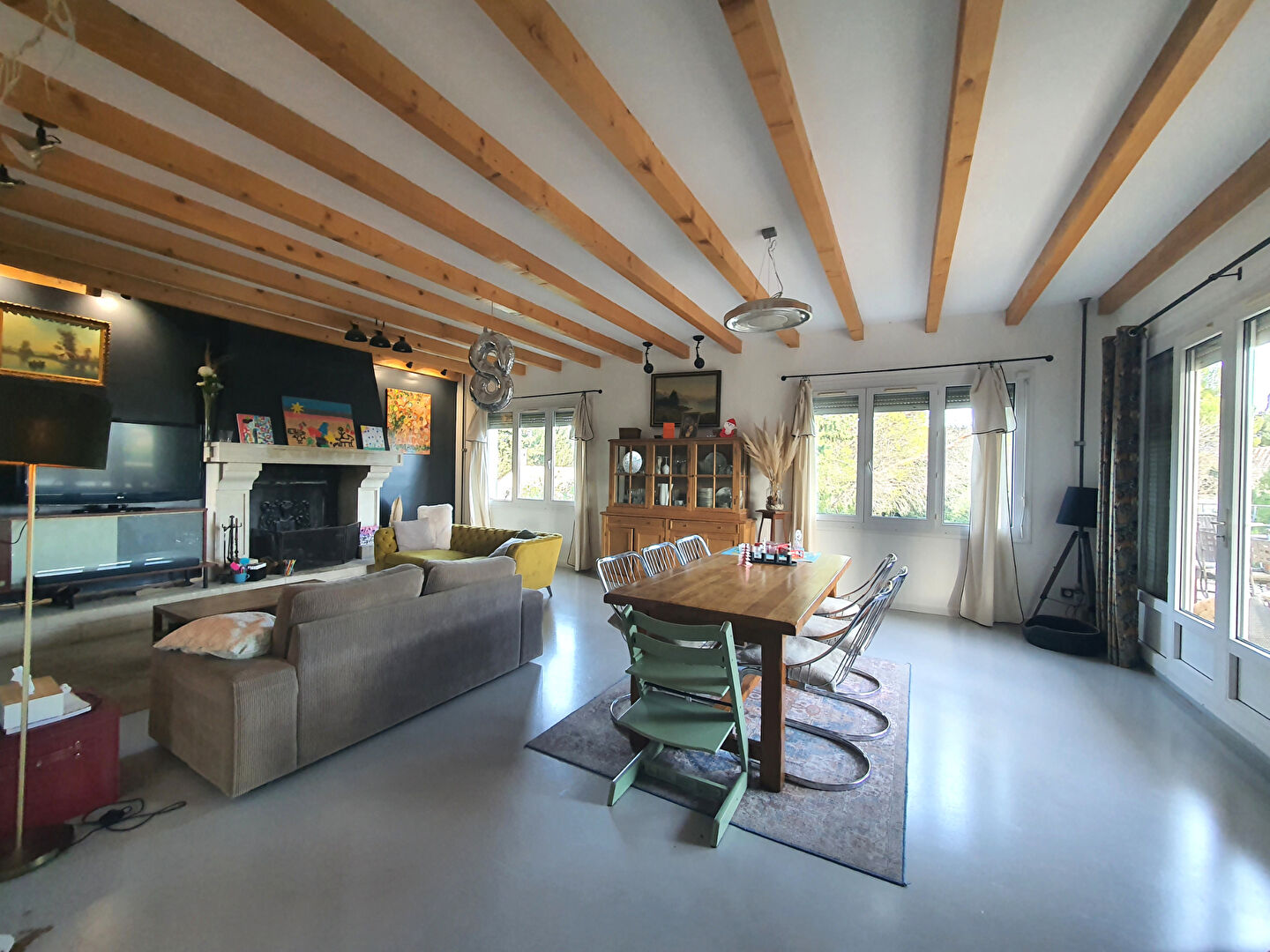 Grand séjour lumineux avec cheminée donnant sur terrasse, 5 belles chambres ( dont 2 avec coin douche) et un bureau / 1 SDB et 1 salle d'eau / 2 WC / buanderie / cellier / cave.