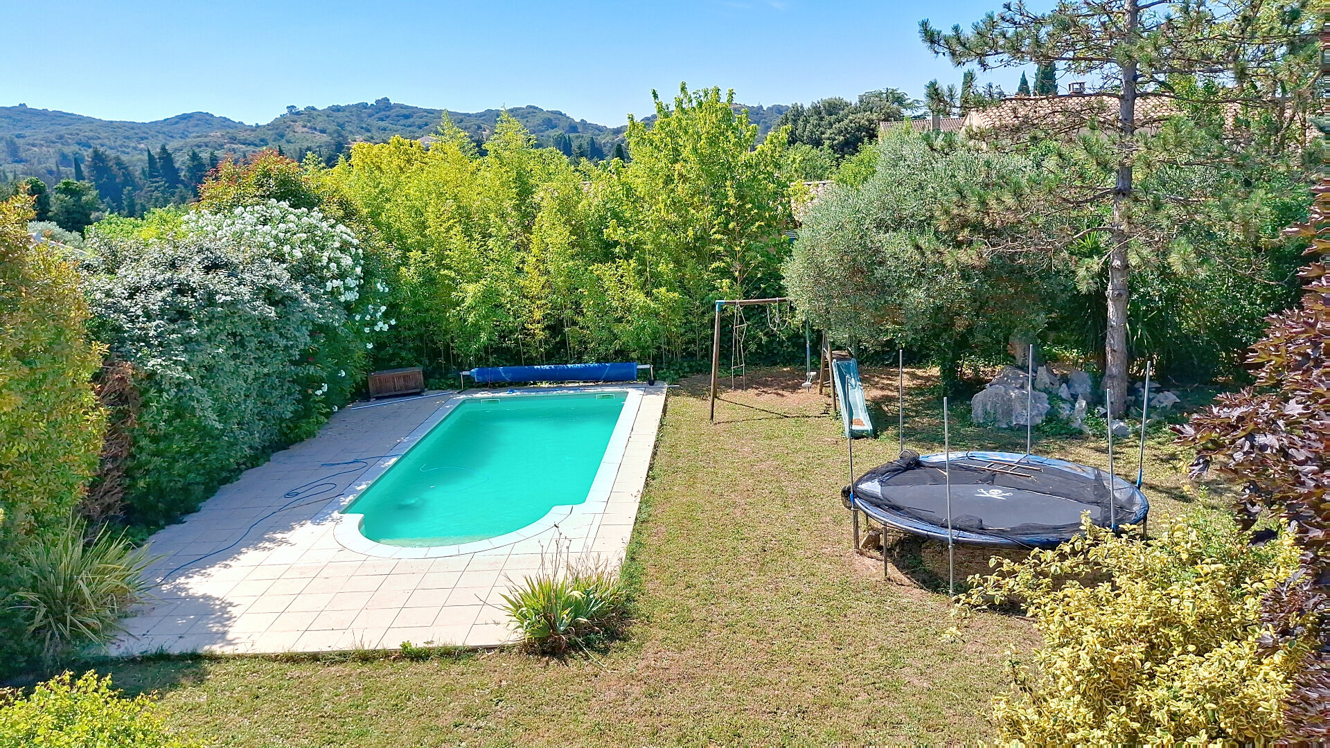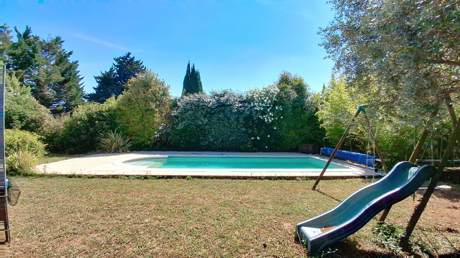 Un grand garage, le tout sur un jardin paysager de 1815 m² avec piscine (4X8).