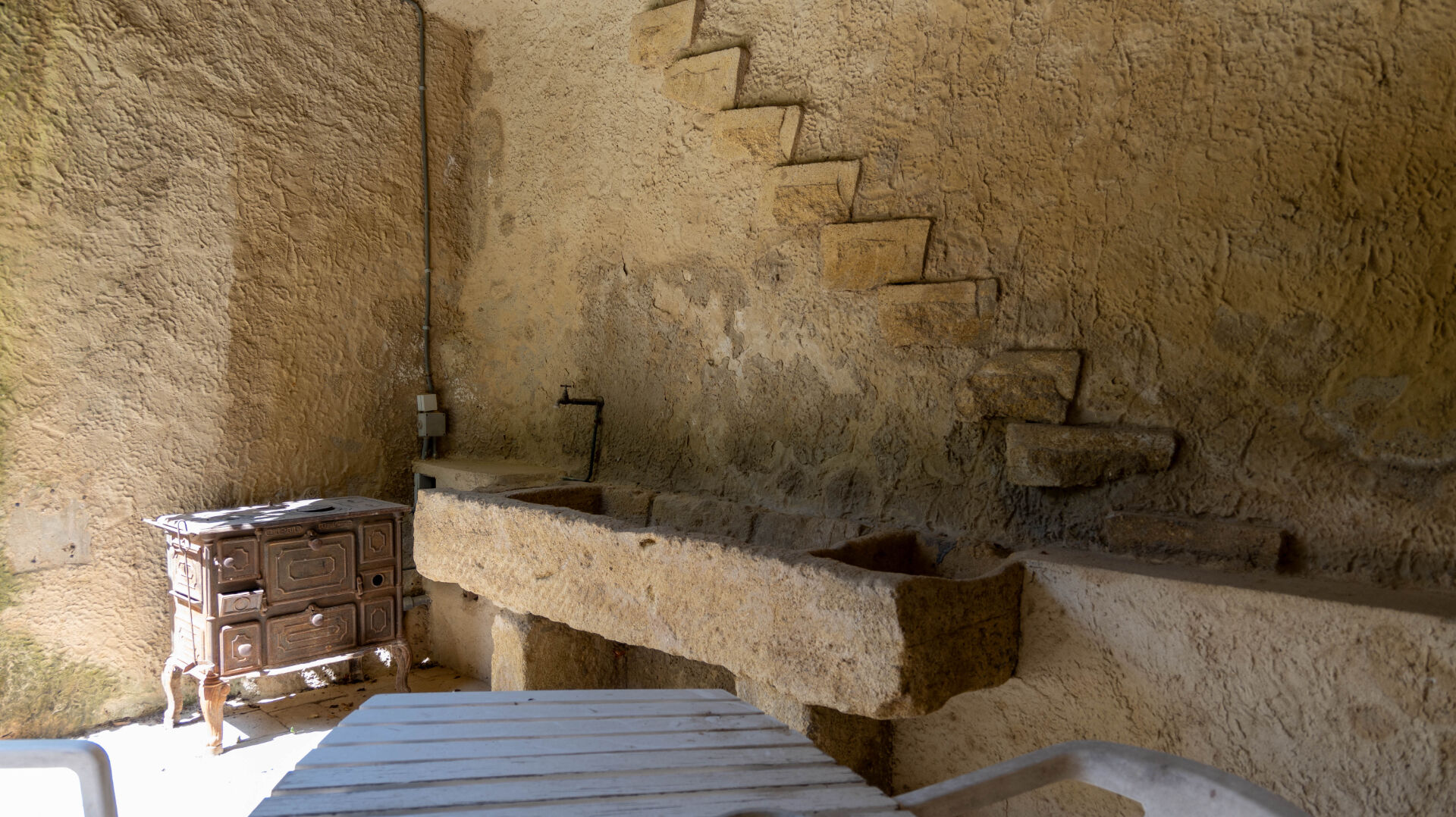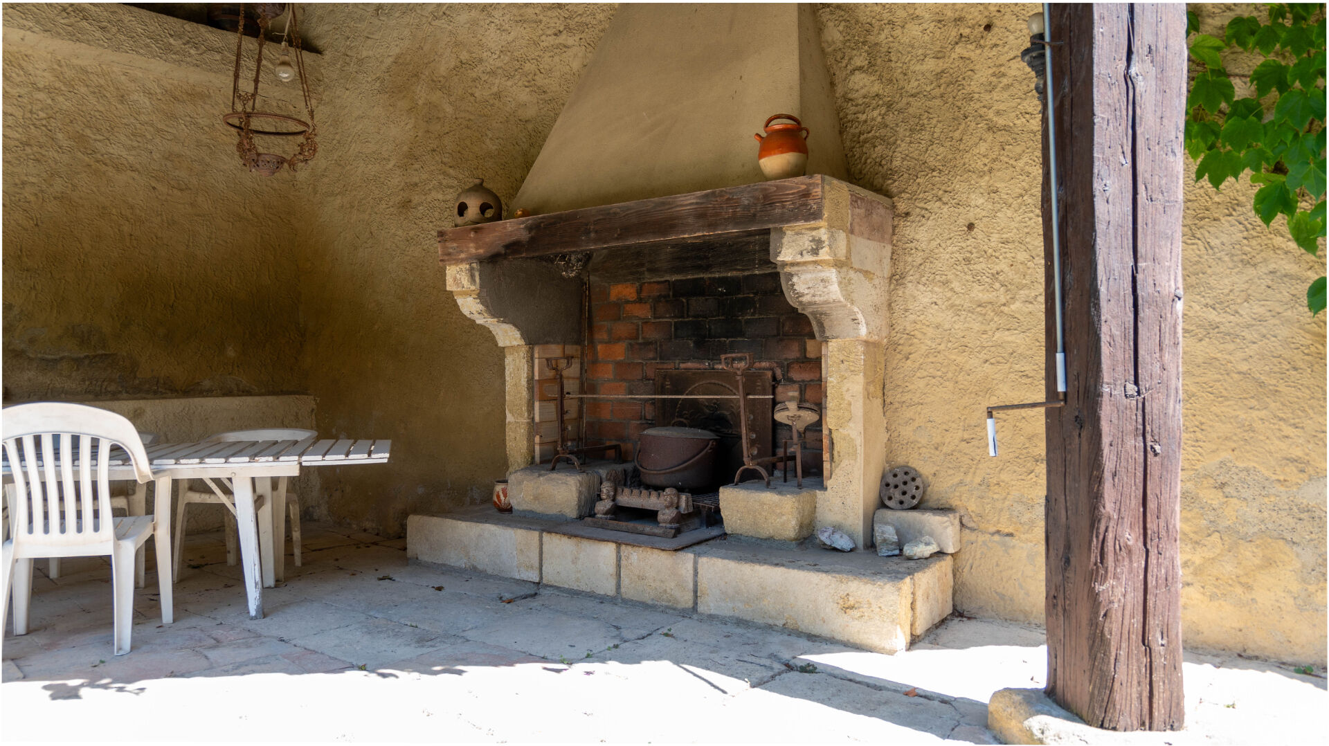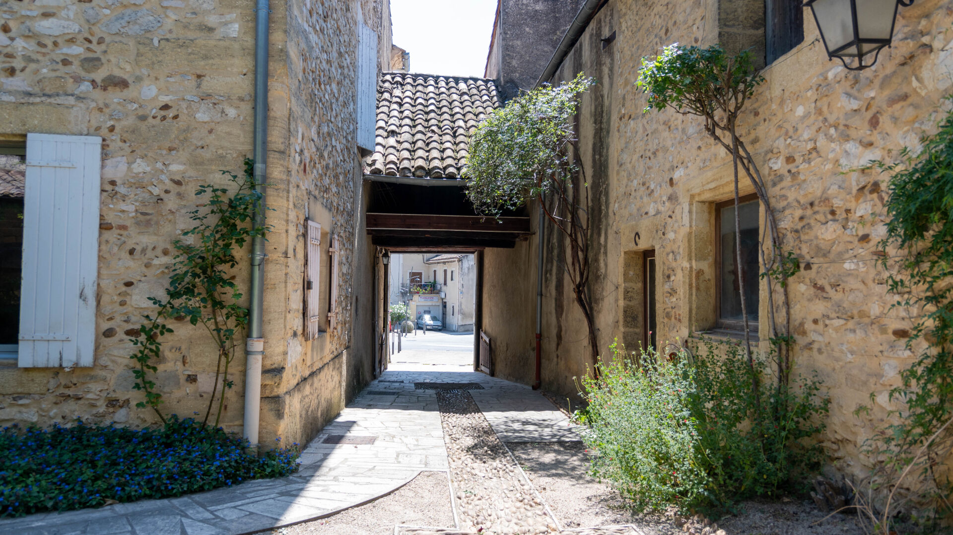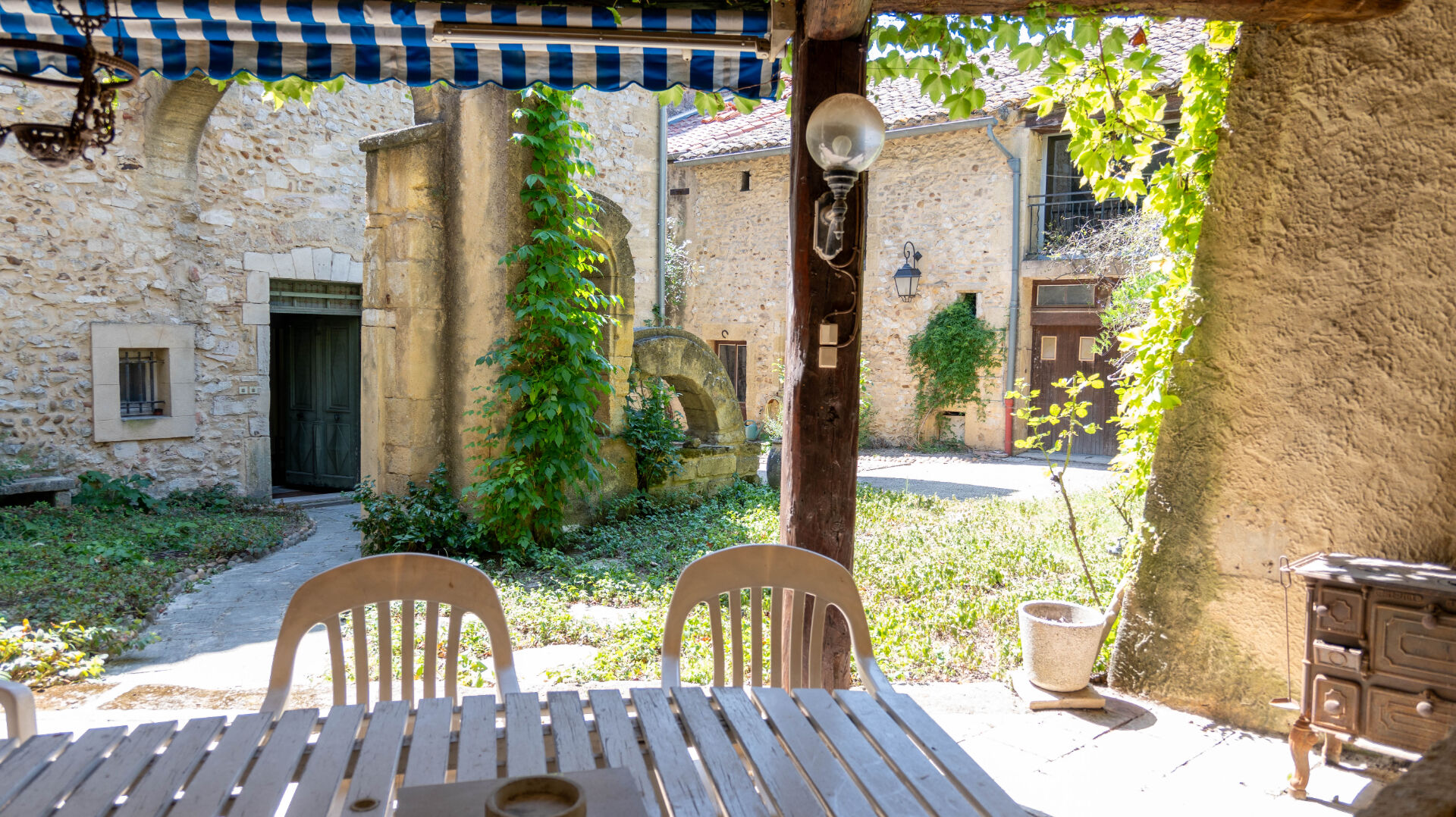 Le bâtiment s'articule autour d'une cour intérieure avec un jardin intimiste qui offre la possibilité de stationner 2 ou 3 véhicules. Les extérieurs disposent d'un puit pour l'arrosage, d'une cuisine d'été, d'un atelier de 30m²,d' un garage sur 2 niveaux d'environ 26m² et d' un pigeonnier.