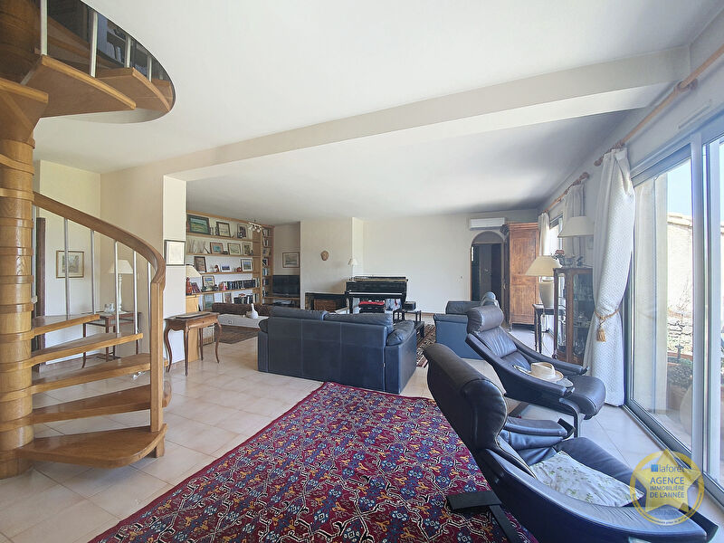 Le séjour de plus de 60 m² avec cheminée/ climatisation et vue sera parfait pour revoir familles et amis.