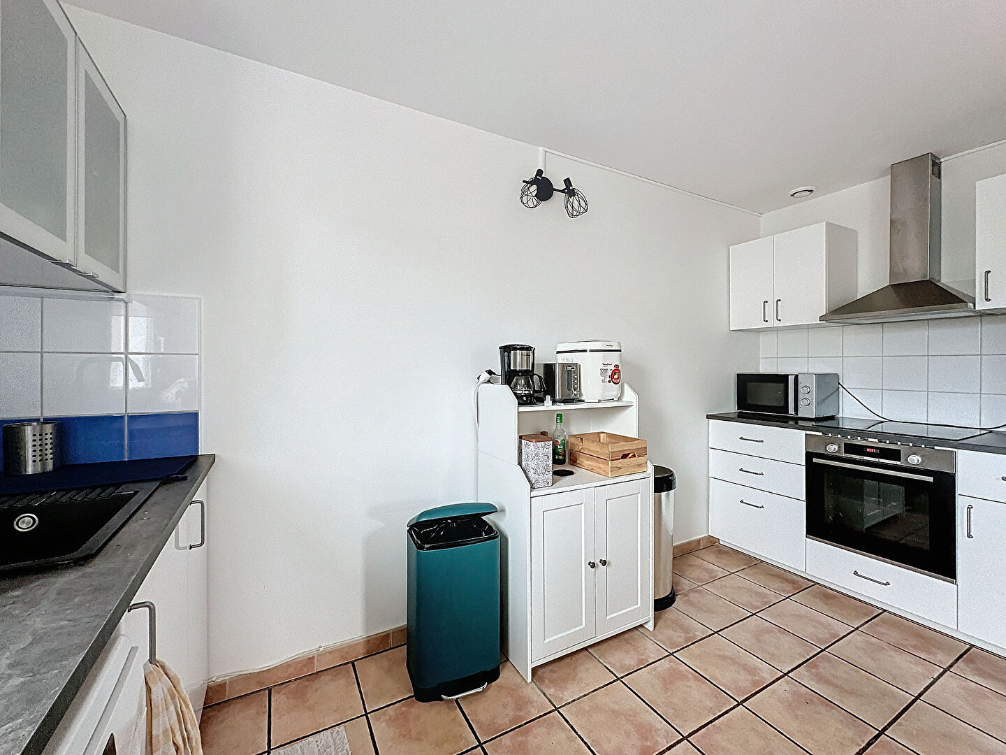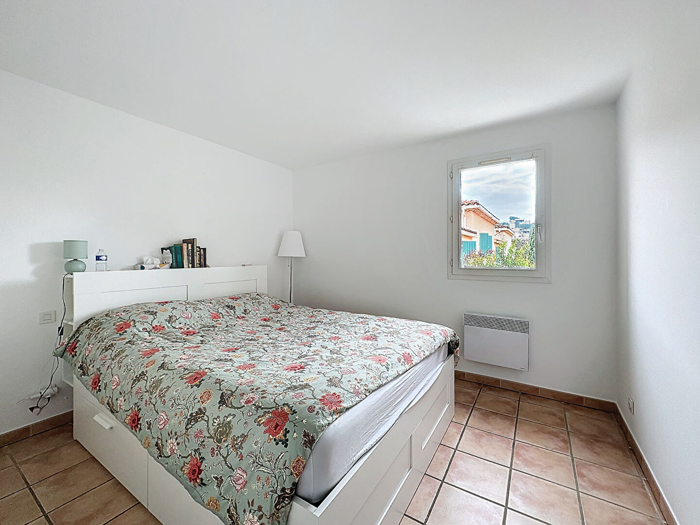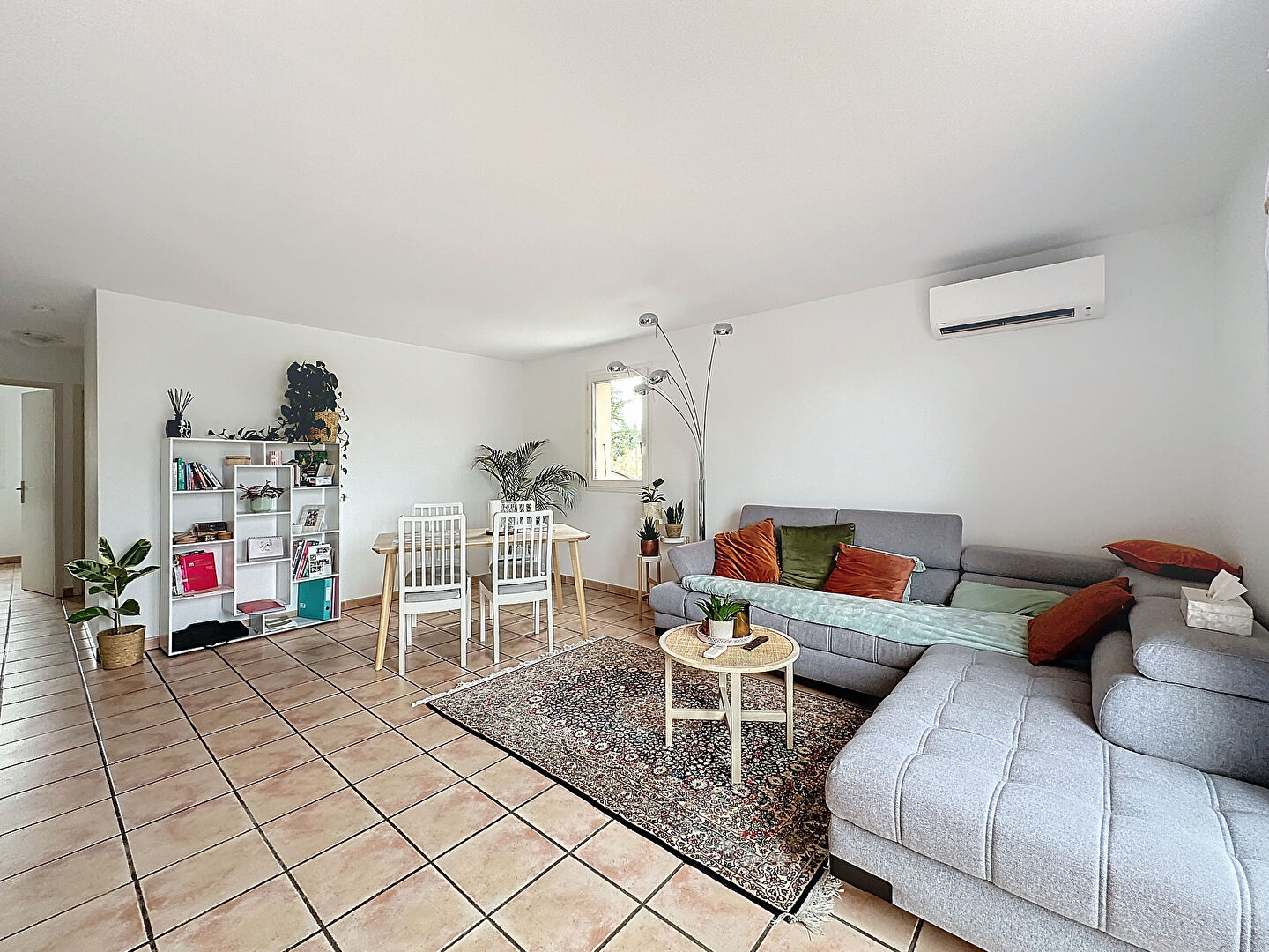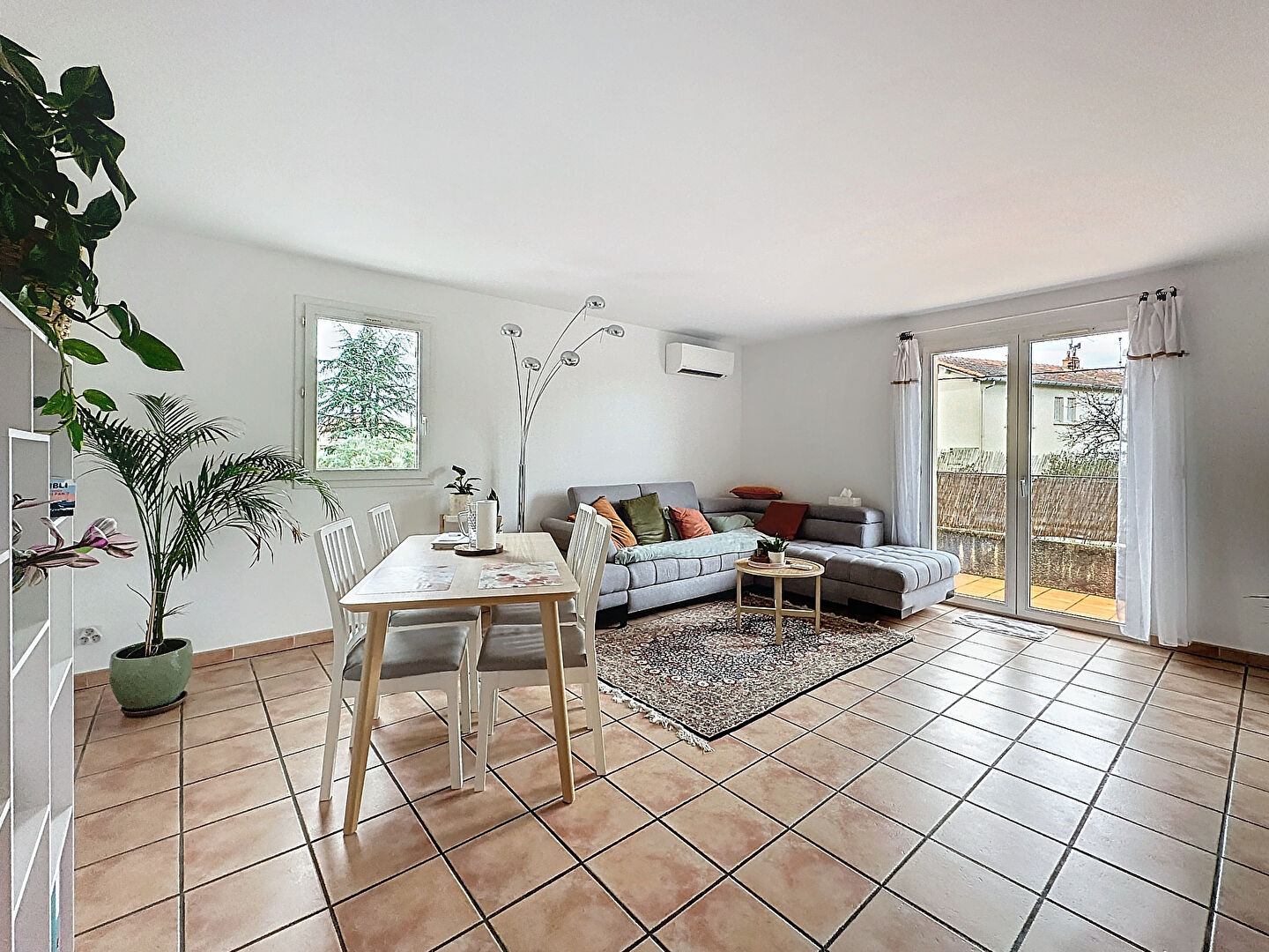 Appartement avec de beaux volumes, lumineux, cuisine aménagée, belle pièce de vie avec climatisation, deux chambres avec grand placard, salle de bain avec wc et grand cellier. Garage fermé.