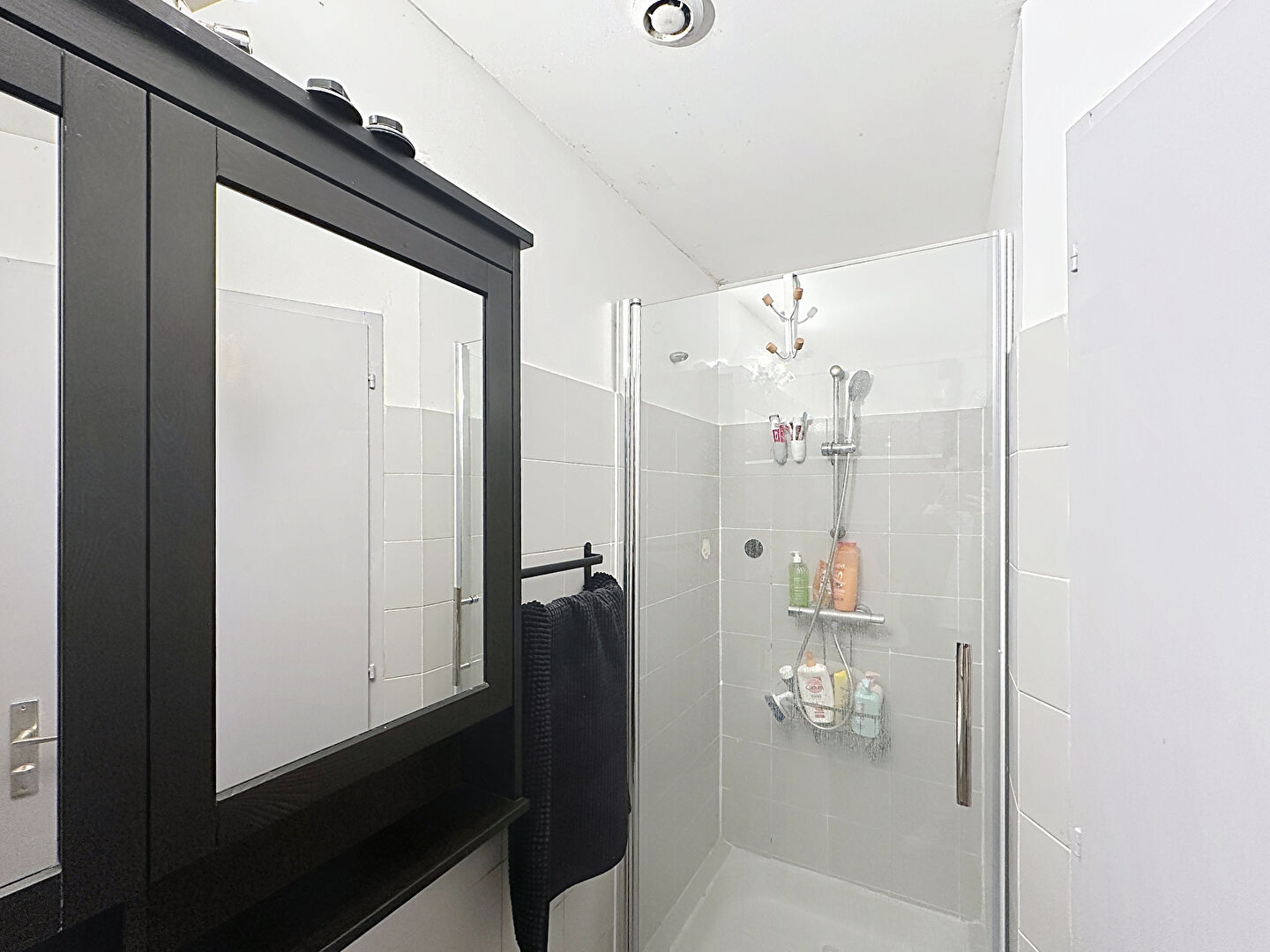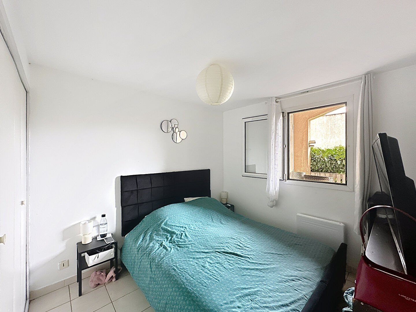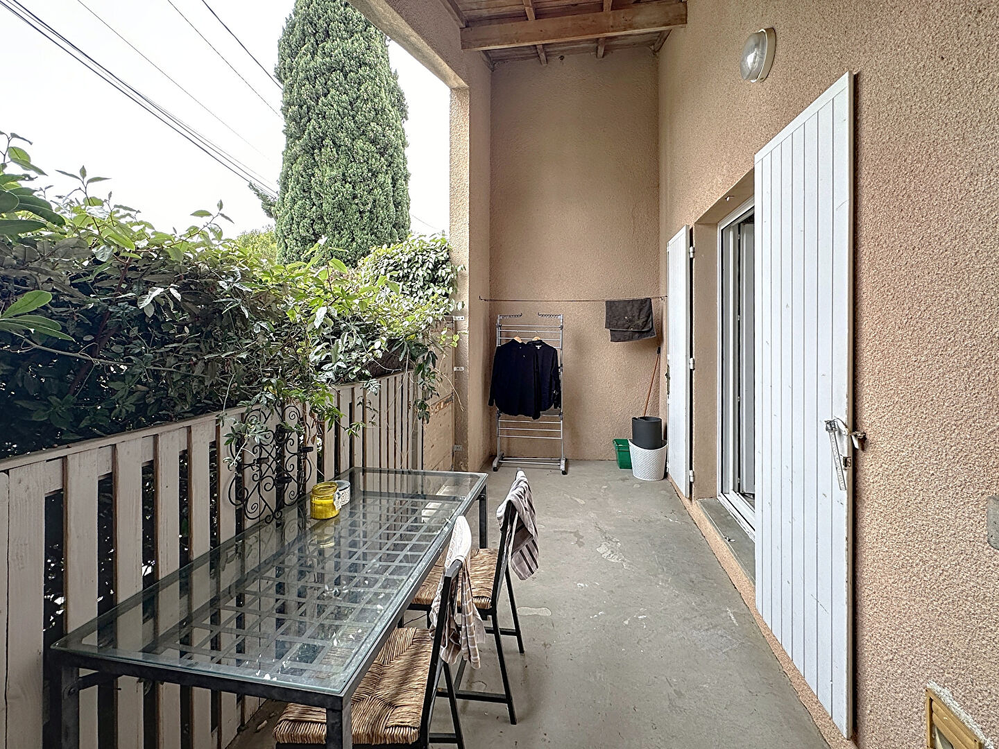 Pièce de vie avec cuisine aménagée ouverte, terrasse abritée plein sud, une chambre avec placard et salle d'eau avec wc, cellier.